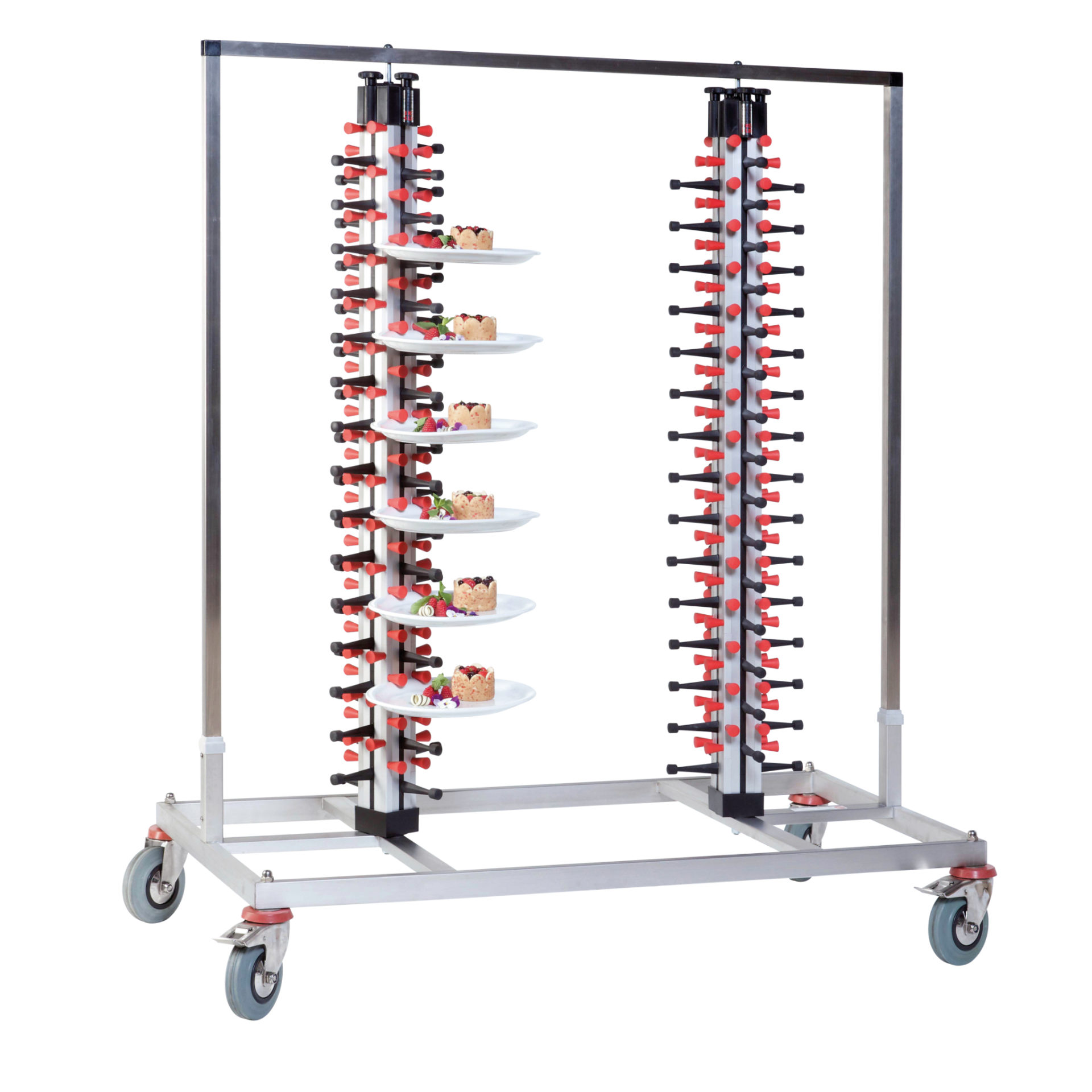 Die fahrbaren Tellerwagen der Serie PM Duo erlauben mit ihren zwei Säulen das Stapeln einer besonders großen Anzahl von Tellern auf kleiner Fläche. Sie eignen sich optimal für Hotellerie und Cateringbetriebe z. B. von Banketten, Hochzeiten etc. Vier Rollen, zwei davon feststellbar, ermöglichen zudem einen einfachen Standortwechsel, z. B. vom Kühlraum oder der Hotbox zum späteren Servieren. Jede der Säulenseiten ist mit Hilfe der Verstellschrauben einzeln an die jeweiligen Tellerhöhen anpassbar.