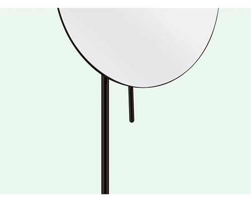 Die Verbindung von runden feinen Formen wirkt minimalistisch, ist zugleich aber auch Platz sparend und ergonomisch. Der Spiegeldurchmesser wurde mit 200 mm bemessen und ermöglicht eine zerrfreie Dreifach - Vergrößerung.