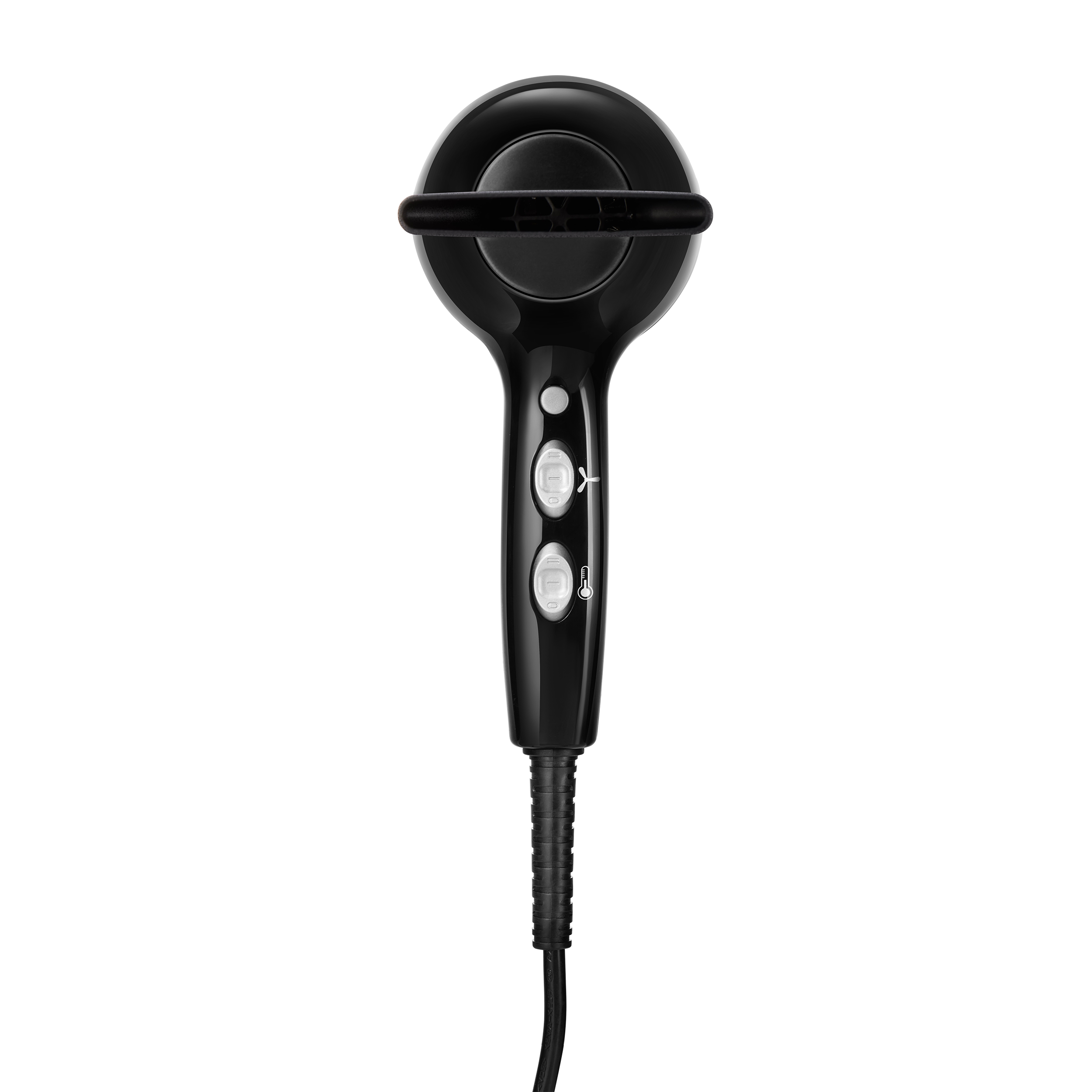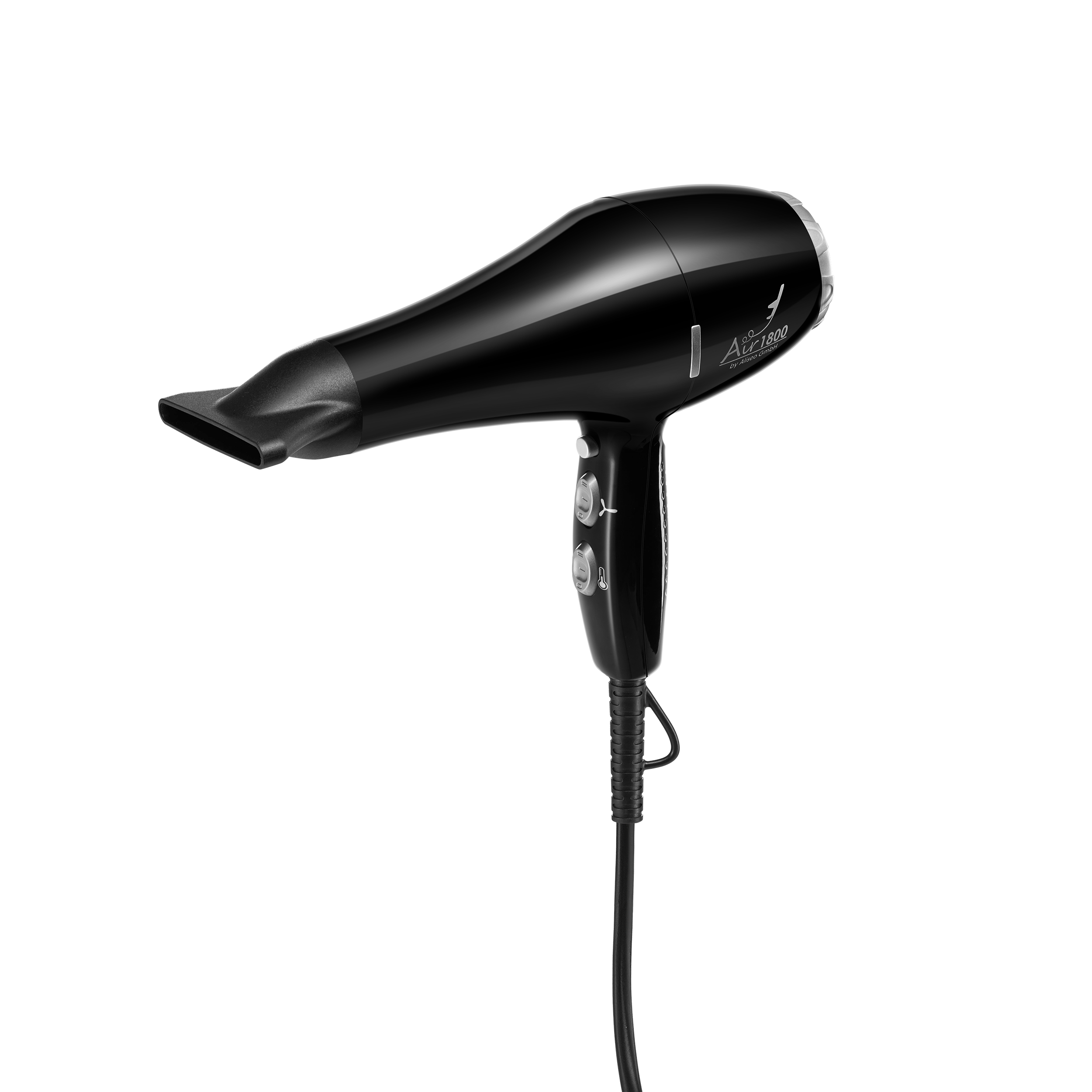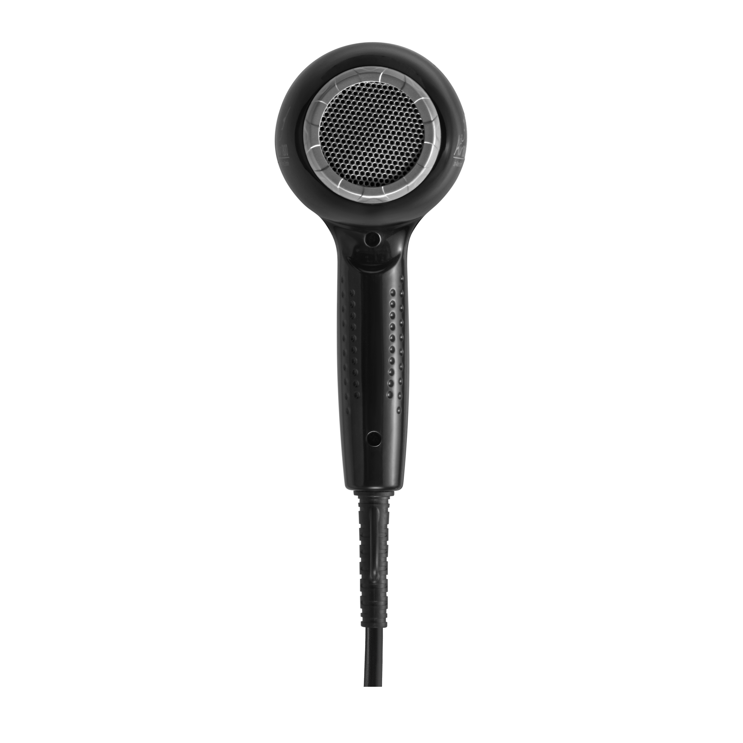 AIR LIGHT Hotel-Haartrockner Konzipiert für maximalen Luftstrom und sehr geringes Gewicht. Beständige Hartplastik-Ausführung. Glänzendes Schwarz mit Silber-Akzenten.