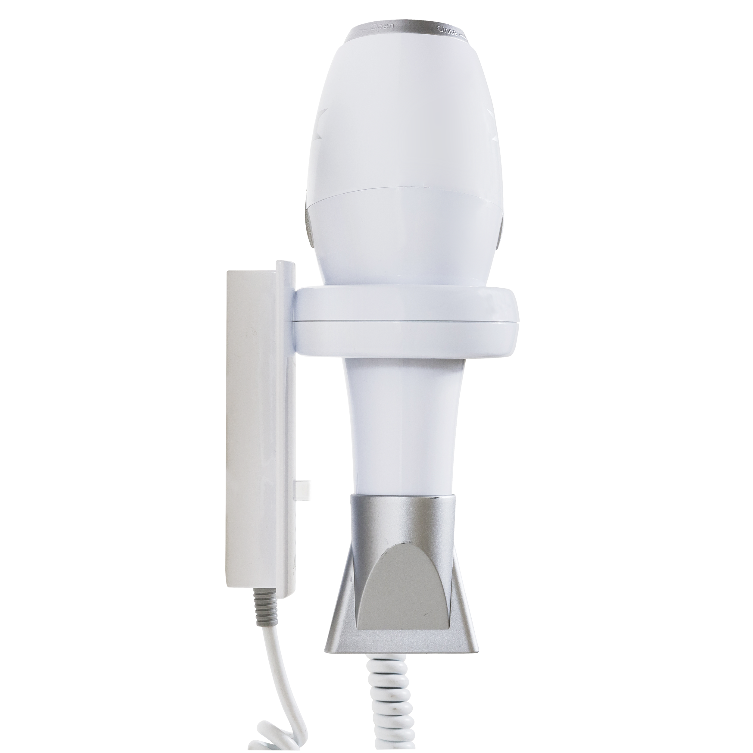 Luxus Performance Hotel-Haartrockner Konzipiert für maximalen Luftstrom, geringes Gewicht und eine lange Lebensdauer. Beständige Hartplastik-Ausführung. Mit Silber-Akzenten.