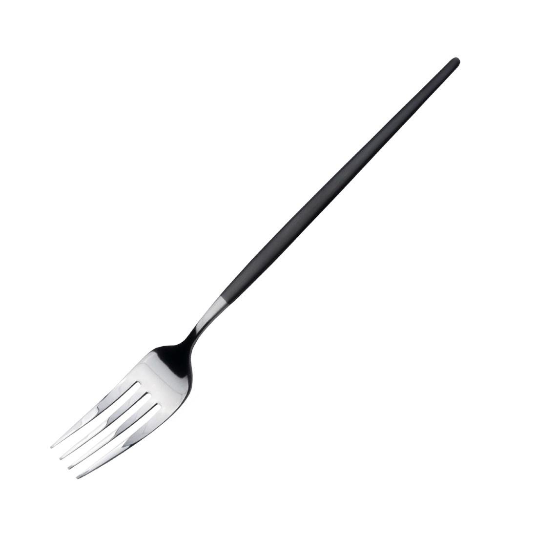 Schlichtes Design, das sich durch sein modernes Aussehen, die feinen Linien und die zwei Farben auszeichnet. Das Besteck ist aus glänzendem 18/0-Edelstahl gefertigt und hat eine mattschwarze Titanbeschichtung auf den Griffen für einen zeitgemäßen Stil. Spülmaschinengeeignet.