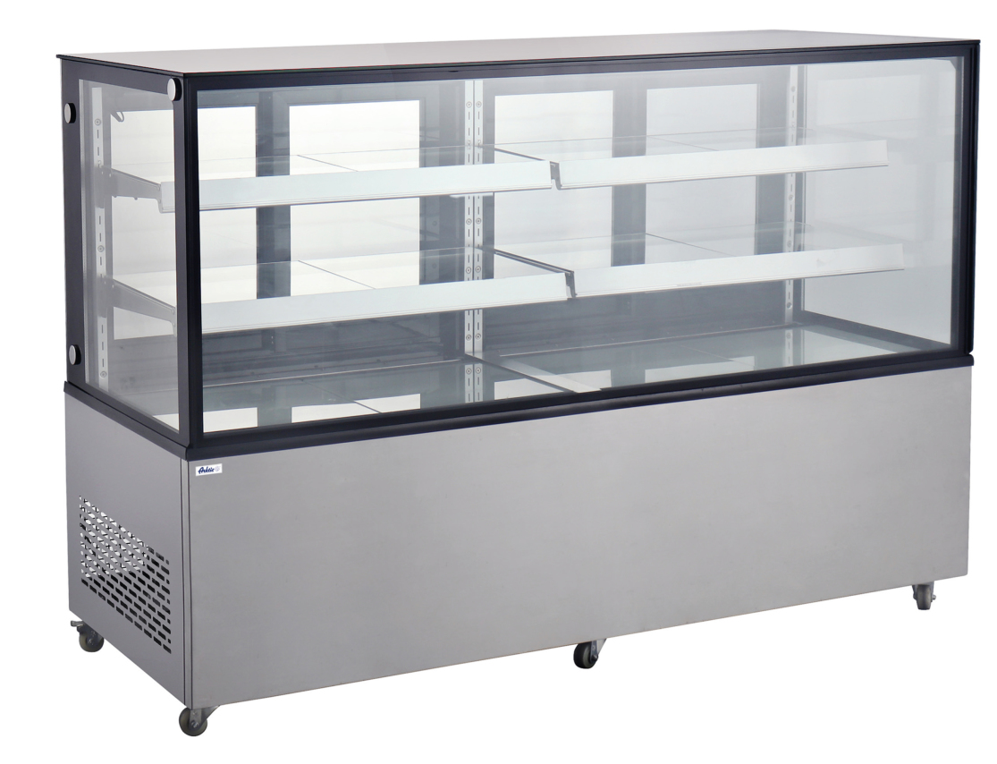 Gehäuse aus Edelstahl mit Doppelverglasung. Zugang durch Tür auf der Rückseite. Zwangsluftkühlung mit automatischer Abtauung, Kompressor unter der Kammer. Helle LED-Beleuchtung oben und unter jedem Regal. Ausgestattet mit 4 Rollen, 2 davon mit Bremsen. Digitales Display und Temperaturregelung. Temperaturbereich: +2°C bis +6°C. Klimaklasse: 4 Kältemittel: R290 Ausgestattet mit 2 verstellbaren Glasböden.