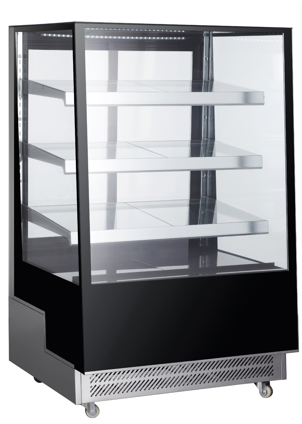 Gehäuse aus Edelstahl mit Doppelverglasung. Zugang durch Tür auf der Rückseite. Zwangsluftkühlung mit automatischer Abtauung, Kompressor unter der Kammer. Helle LED-Beleuchtung oben und unter jedem Regal. Ausgestattet mit 4 Rollen, 2 davon mit Bremsen. Digitales Display und Temperaturregelung. Temperaturbereich: +2°C bis +6°C. Klimaklasse: 4 Kältemittel: R290 Ausgestattet mit 3 verstellbaren, leicht geneigten Glasböden.