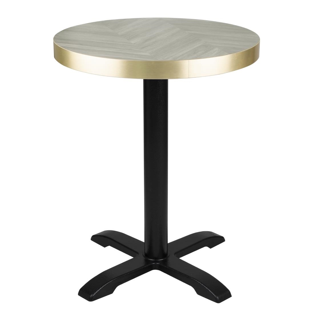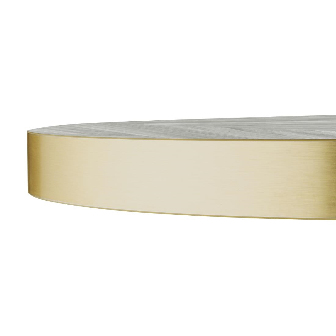 Mit ihrem lebendigen Chevron-Print und der Goldkante eignet sich diese runde Tischplatte von Bolero perfekt für jede gewerbliche Gastfreundschaft, jedes Büro oder jedes Café.