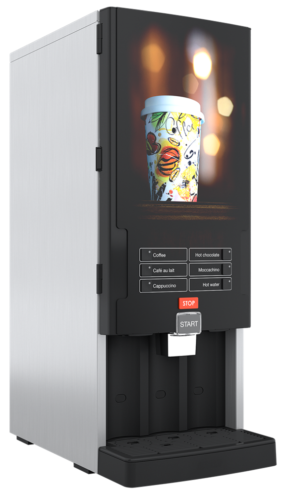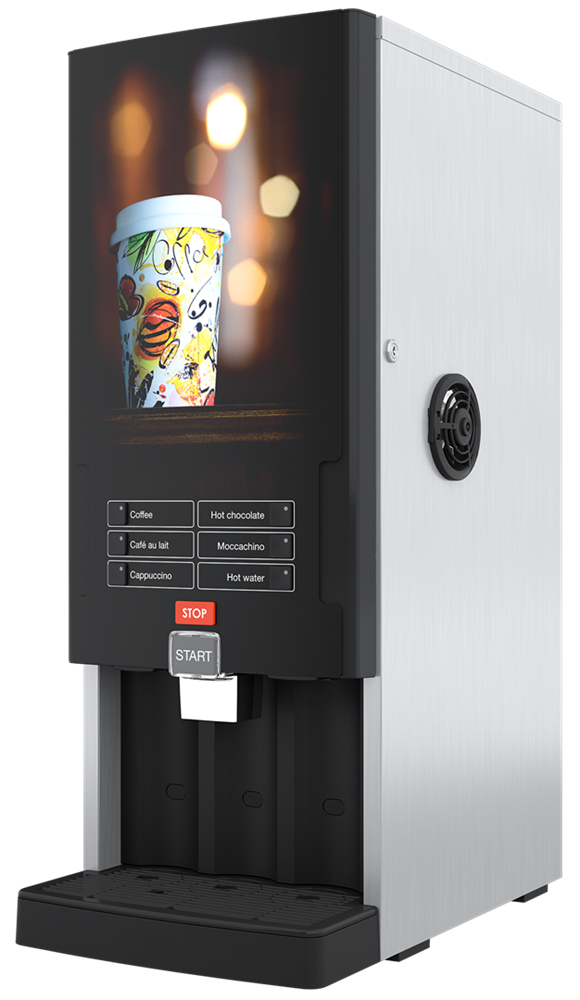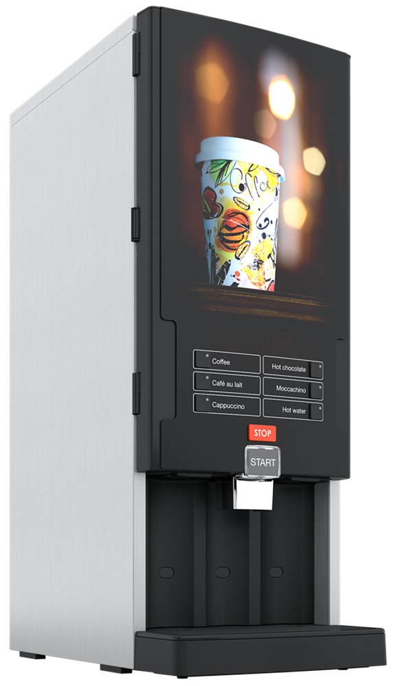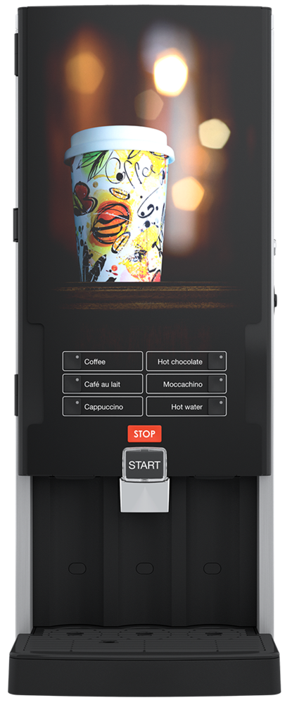 Ausführung mit 3 Produktbehälter. 5 wählbare Produkte. Umfangreiche Getränkeauswahl in Abhängigkeit der gewählten Instantzutaten.