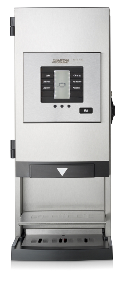 Bolero Turbo-Maschinen sind standardmäßig ausgestattet mit: Entkalkungsanzeige, Tropfblech-voll-Anzeige, Energiesparmodus, Spülprogramm sowie Gesamt- und Tageszähler.