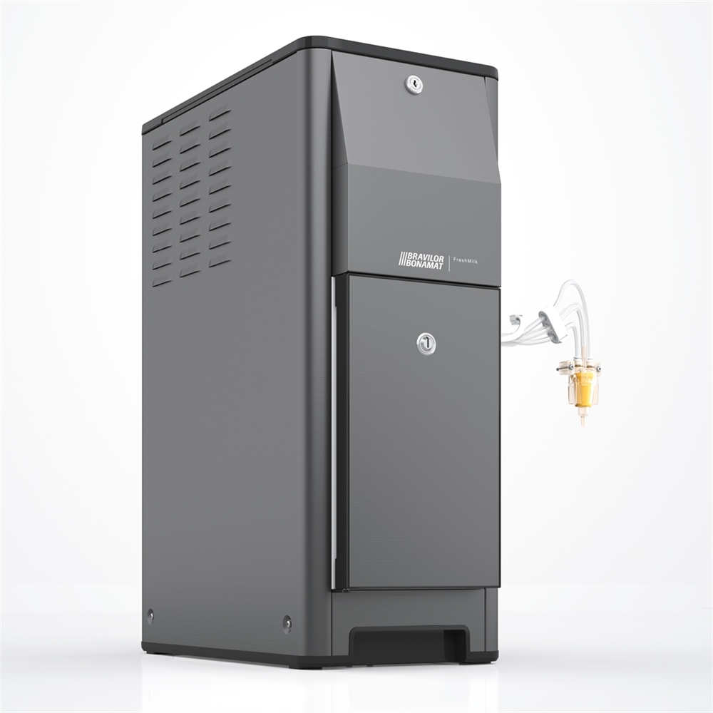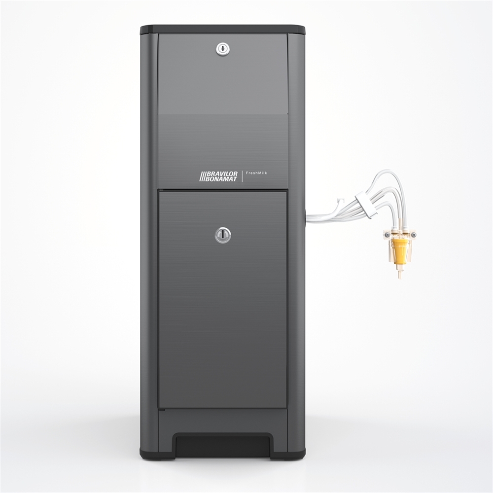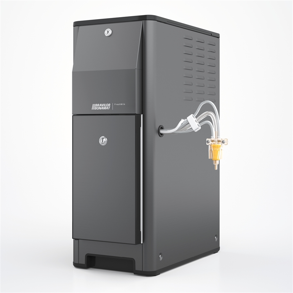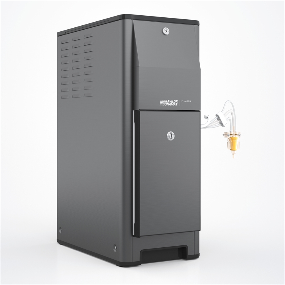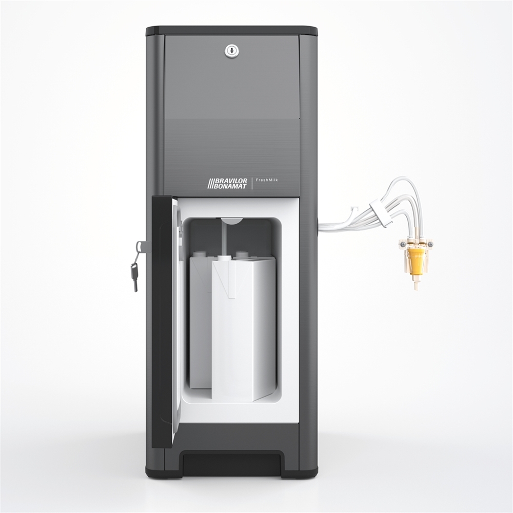 Das Modell FreshMilk ist die Frischmilch-Lösung von Bravilor Bonamat. Diese Einheit hält die frische Milch auf einer konstanten Temperatur von 4°C. Der in der Esprecious integrierte Milchaufschäumer stellt auf dieser Grundlage einen herrlich luftigen Milchschaum her. Ein rotierender Prozess zaubert zusammen mit Dampf und Luft aus der frischen, kalten Milch eine perfekte Schaumschicht von außergewöhnlichem Geschmack! Großer Vorteil der FreshMilk ist, dass Sie die Maschine direkt über den Touchscreen der Esprecious ansteuern können.