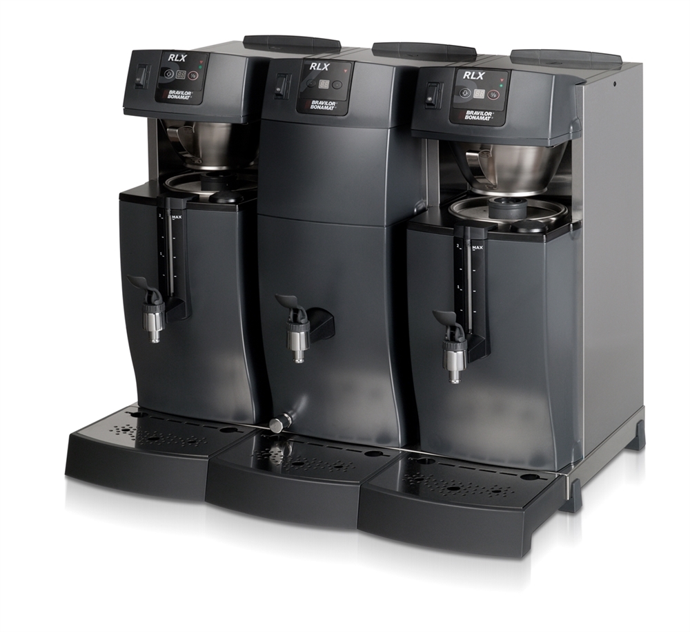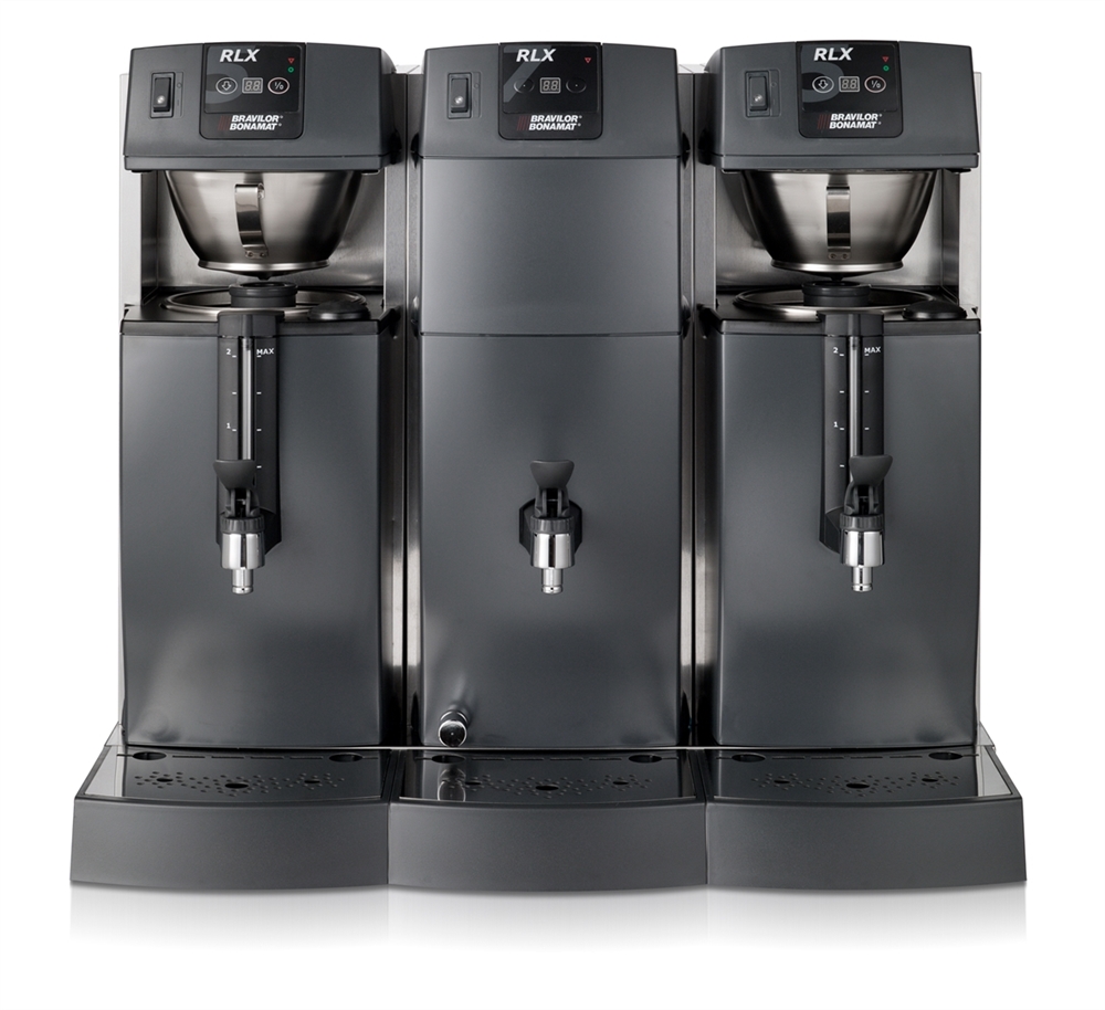 Kaffee- und Teebrühmaschinen mit integriertem Heißwassergerät oder Heißwasser-/Dampfgerät (nicht RLX 55 und RLX 5). Mit Wasseranschluss. Die Brühung erfolgt in Behälter mit Schauglas. Ausgestattet mit Tipptasten für unterschiedliche Brühmengen, Entkalkungsanzeige, akustischem Signal bei Brühende, CNS-Durchlauferhitzer und Trockengehschutz. Inklusive Edelstahlfilterpfanne(n) und Tropfblech.