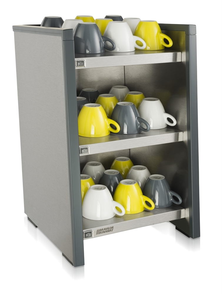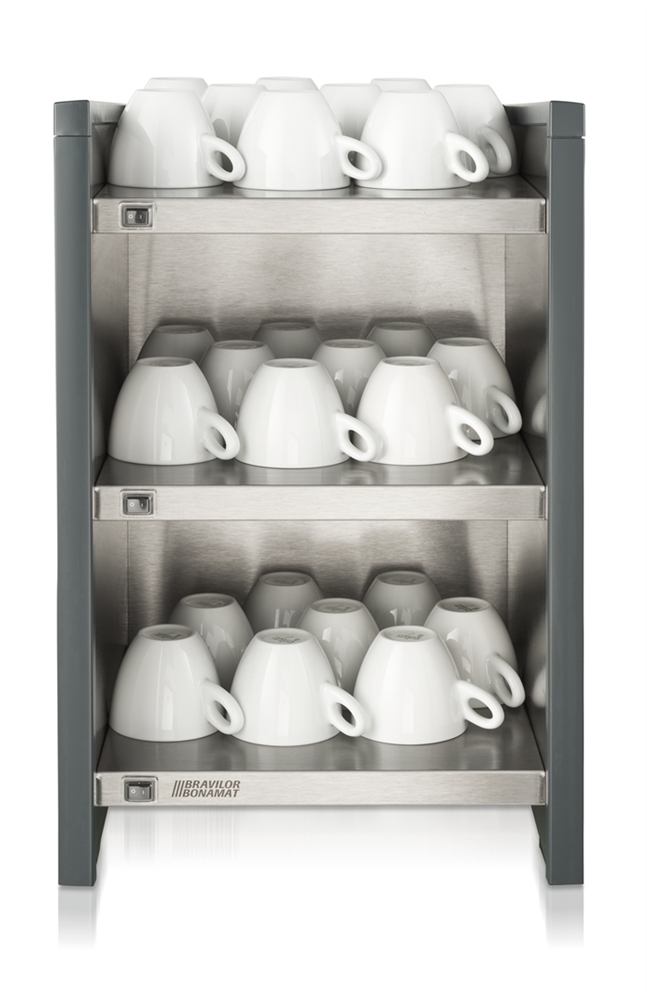 - Der WHK bietet 3 Ebenen mit einer Kapazität von ca. 120 Tassen. Jede Heizebene kann separat beheizt und geschaltet werden.