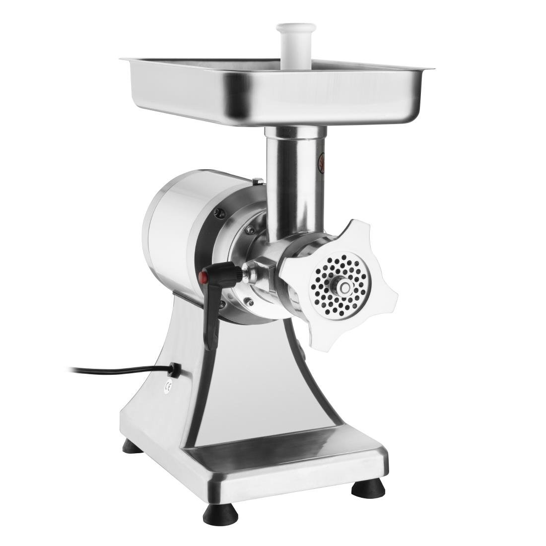 Hochwertiger professioneller Fleischwolf aus Edelstahl mit Zahnradantrieb und einem sparsamen Motor mit Lüfter. Schubumkehrfunktion.
