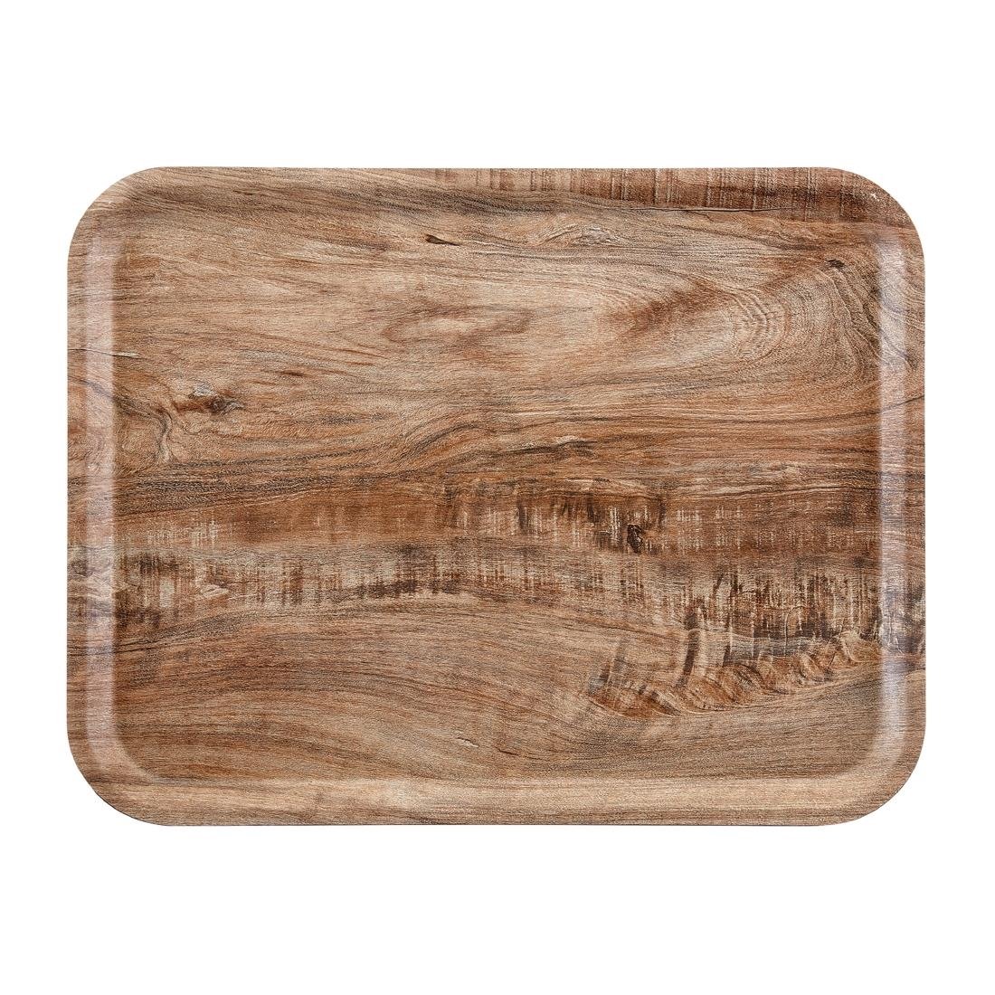 Bruchsichere Serviertabletts aus Melamin mit Holzeffekt, die sowohl attraktiv als auch stabil sind. Perfekt für Cafés, Restaurants und Kneipen. Geschirrspülergeeignet.