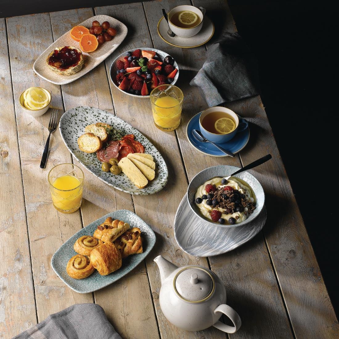 Die natürlichen Formen und Farben der Stonecast-Reihe bilden die perfekte Kulisse für frische, hausgemachte Speisen. Ofen-, mikrowellen- und spülmaschinenfest.