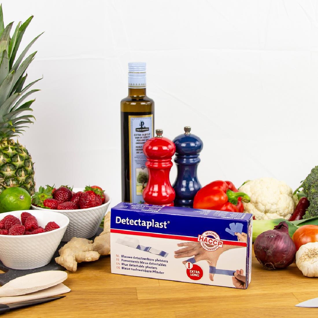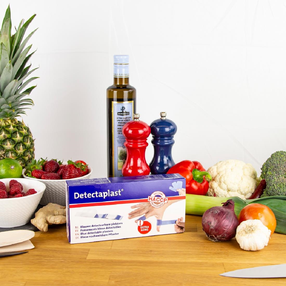 Blaue detektierbare Pflaster, Gastronomiepflaster, werden in vielen Bereichen der Lebensmittelzubereitung eingesetzt, von Sandwich-Läden über Metzgereien und Kuchenhersteller bis hin zu großen Lebensmittelproduktionslinien.