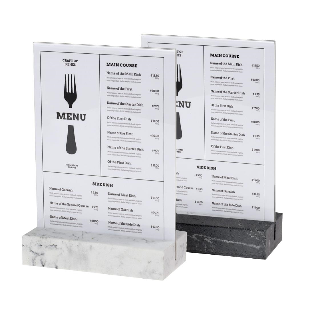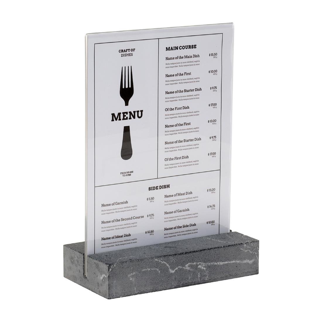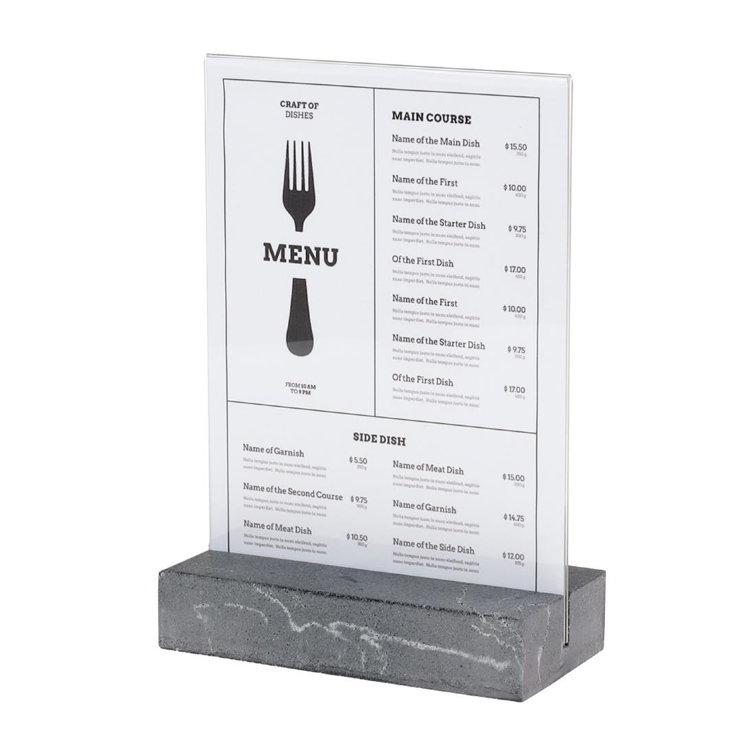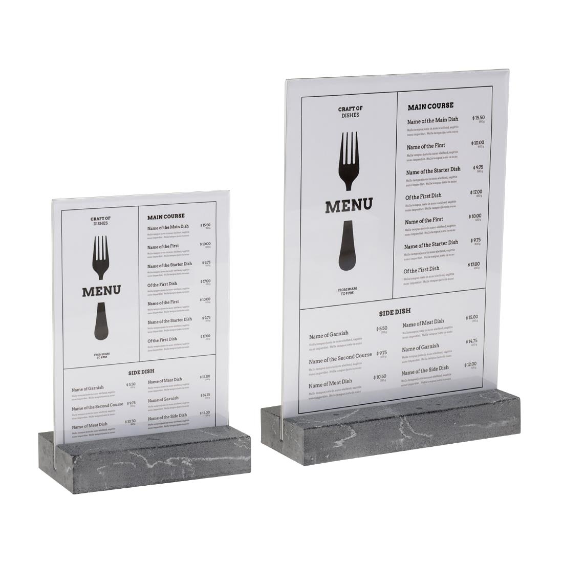 Erhöhen Sie Ihre Präsentation mit unserem erstklassigen A5 Portrait Schildhalter, der für eine elegante und kristallklare Darstellung von Menüs, Anzeigen und anderen wichtigen Informationen entworfen wurde.
