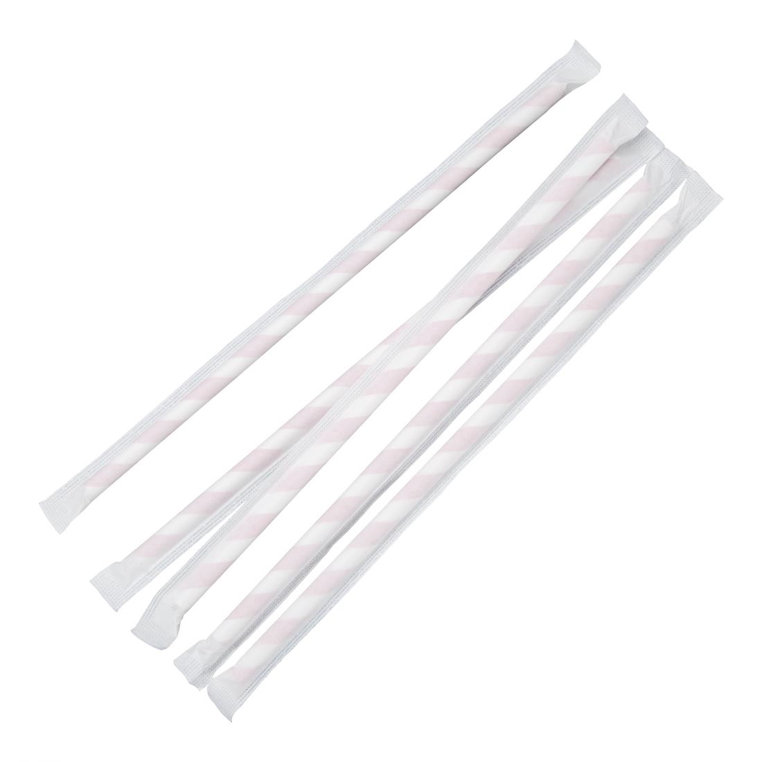 Fiesta Compostable kompostierbare einzeln verpackte Papierstrohhalme 21cm rot-weiß (250 Stück)