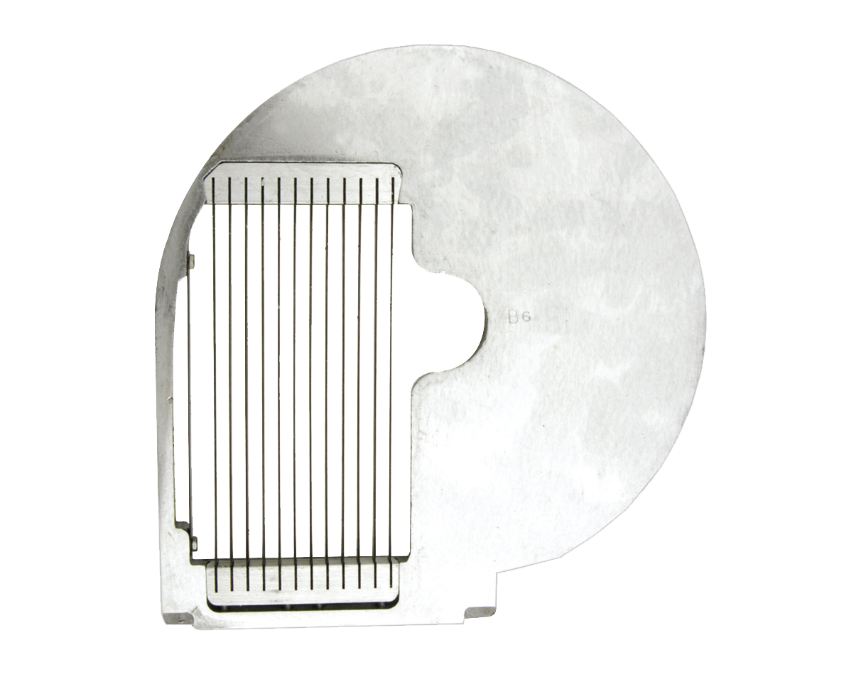 Ausführung: - Scheibe mit Streifenschneider - Schnittstärke 6 mm - zur Herstellung von Pommes - passend für GAM-Gemüseschneider - Verwendung nur mit einer Schneidscheibe E möglich.