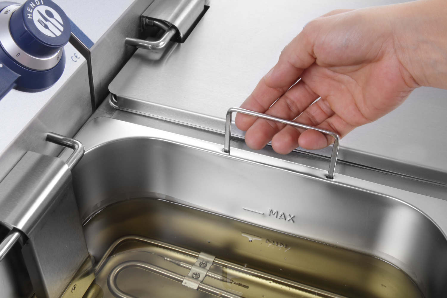 Ein Sicherheitsthermostat sorgt dafür, dass die Fritteuse nicht überhitzt.
