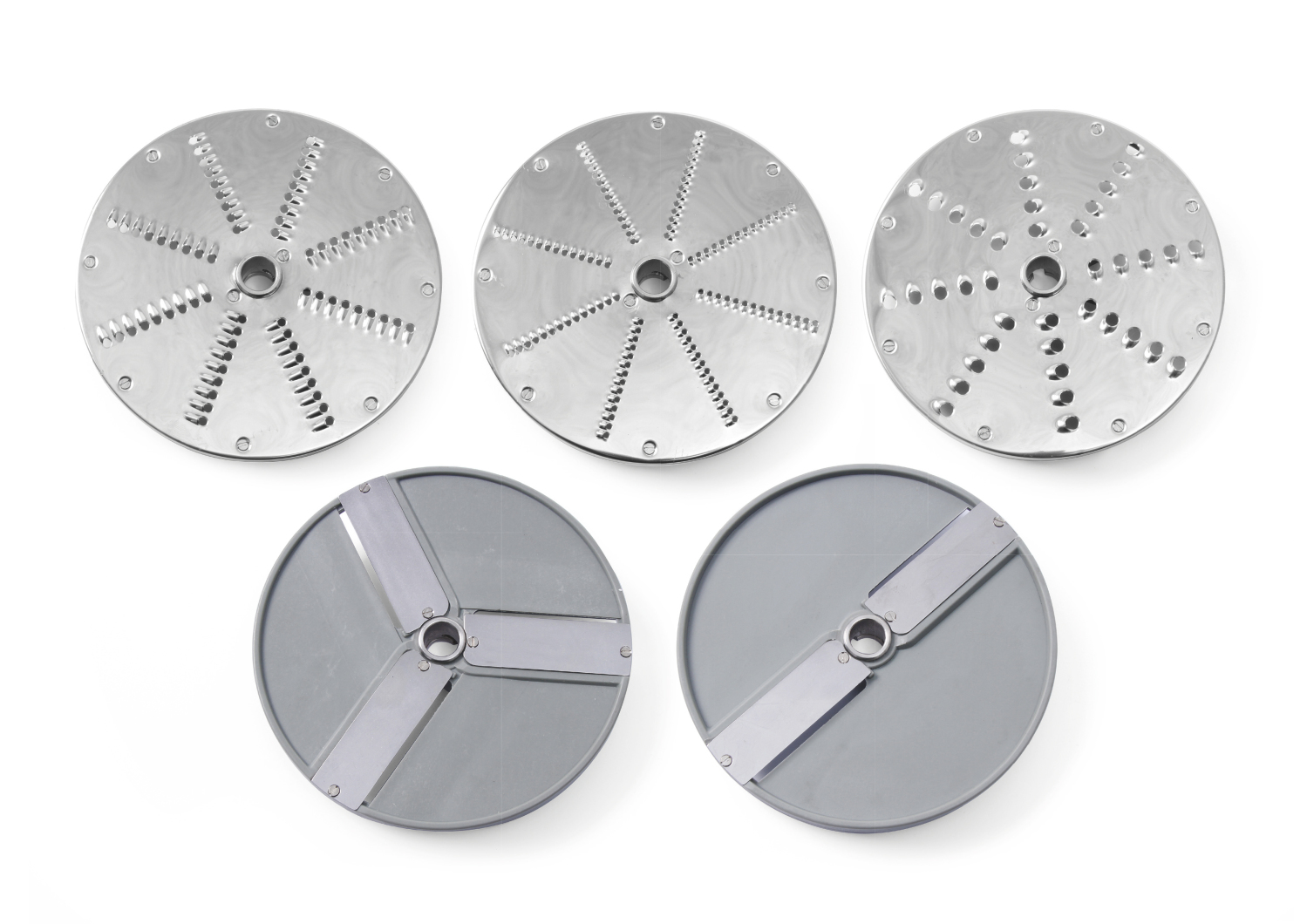 - Beinhaltet 5 verschiedene Messer für unterschiedliche Schneidresultate: Schneidscheiben: 2 und 4 mm, Raspelscheiben 3, 5 und 7 mm.