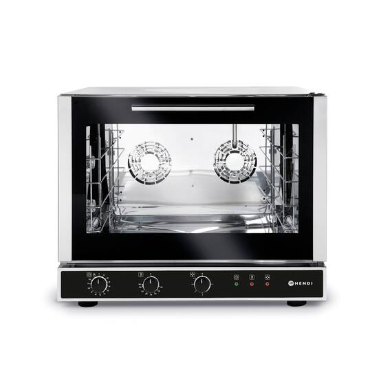 Ideale Lösung für Unternehmen, die ihr Sortiment um frische und leckere Backwaren erweitern möchten. Durch seine kompakte Größe und den kostengünstigen Energieverbrauch ist er praktisch überall einsetzbar. Der eingebaute Befeuchter macht den Ofen auch für anspruchsvollste Backwaren geeignet. Gehäuse und Garraum aus Edelstahl. Glastür mit Schwerkraftbelüftung. Kühlsystem für die Steuerelemente. Die Multifunktionsöfen von Hendi sind spritzwassergeschützt gemäß der IPX 3-Richtlinie. Auslieferung ohne Bleche. Zwei reversible Ventilatoren.