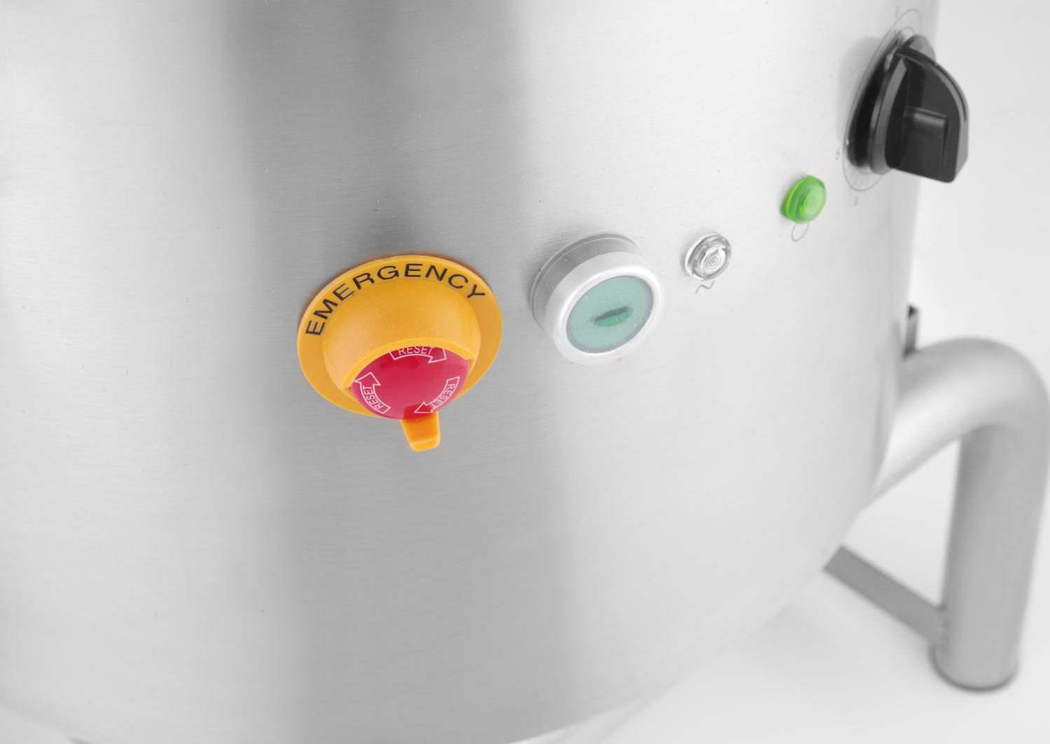 - Das Gerät ist äußerst betriebssicher und ein Mikroschalter stoppt den Schäler, wenn die Abdeckung geöffnet wird.