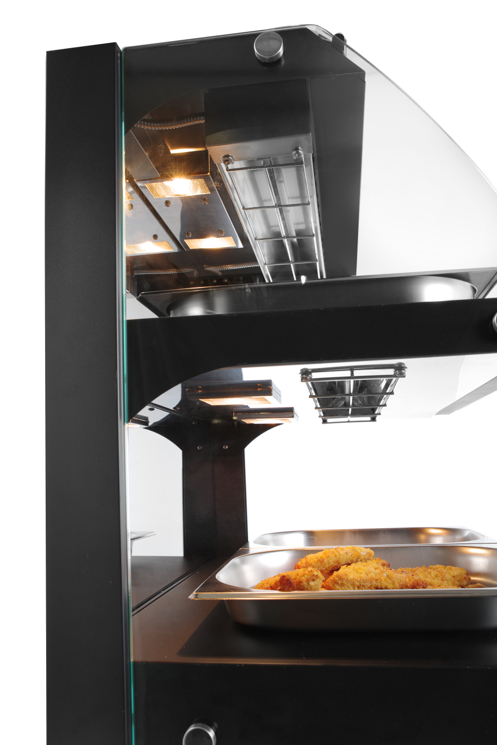 - Ausgestattet mit zwei Quarzheizelementen und einer elektrischen Heizplatte an der Unterseite.
