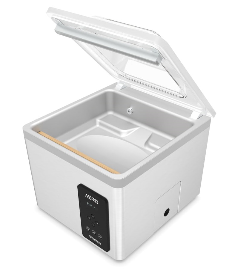 Wasserhaltige und flüssige Produkte wie Suppen und Saucen erreichen während des Vakuumierzyklus’ schnell den Siedepunkt. Senkt man den Kammerdruck unter den normalen Luftdruck ab, fangen Flüssigkeiten bereits bei Zimmertemperatur an zu sieden und kalte Produkte werden gekocht. Die Sensorfunktion erkennt unmittelbar und zuverlässig den aus dem flüssigen Produkt entweichenden Dampf. Signalisiert der Sensor, dass der Siedepunkt erreicht ist, stoppt die Maschine mit dem Absaugen der Luft und beginnt mit der Versiegelung des Beutels. Verwenden Sie für eine perfekte Produktplatzierung eine Schrägeinlage. Nutzen Sie diese Option, um Schäden an Ihrer Vakuumverpackungsmaschine und dem flüssigen Produkt zu vermeiden.