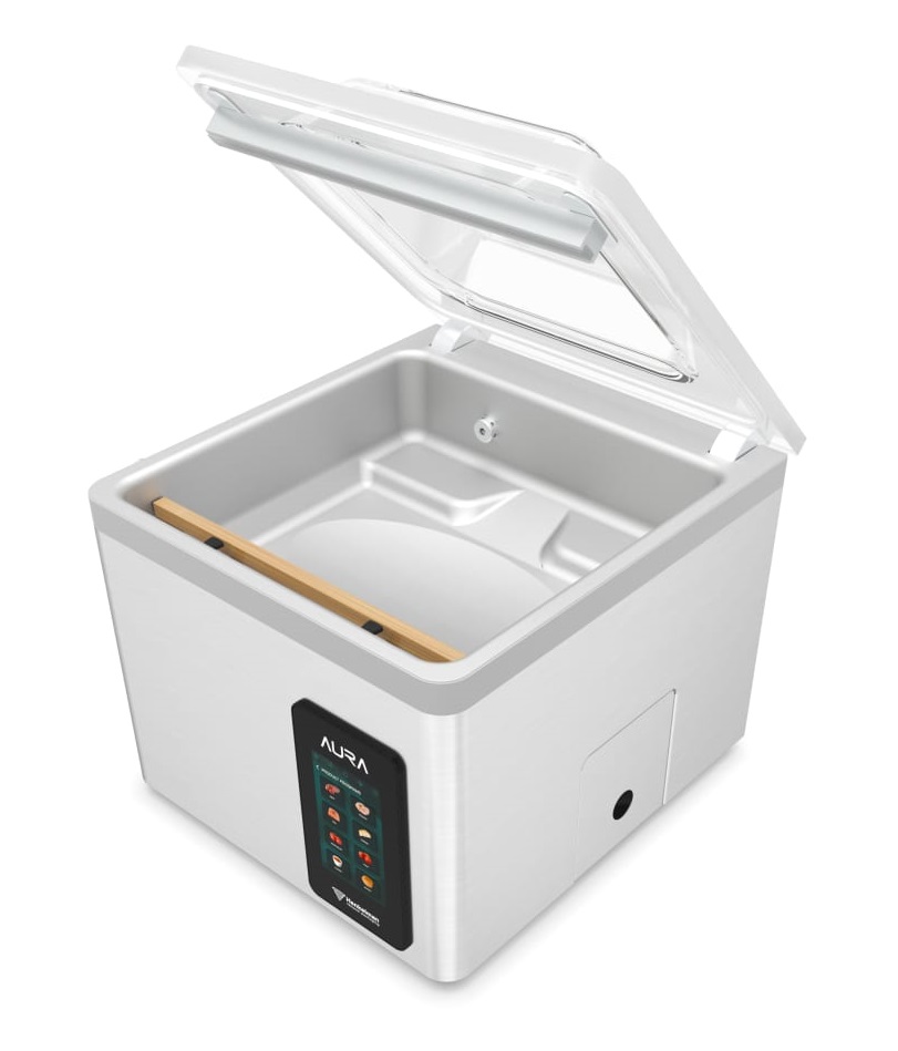 Was auch immer Sie vakuumieren möchten: Aura verfügt standardmäßig über ein breites Spektrum an vordefinierten Vakuumprogrammen für das Herstellen von optimalen und professionell verpackten Produkten. Die innovative Software sorgt dafür, dass an der Maschine die richtigen Funktionen ein- oder ausgeschaltet werden. Zusätzlich können Sie nach Belieben Vakuumprogramme hinzufügen oder optimieren. Auf diese Weise passt sich Aura nahtlos Ihren Verpackungswünschen an. Bei jedem Zyklus aufs Neue. Das ist intelligentes Vakuumieren.