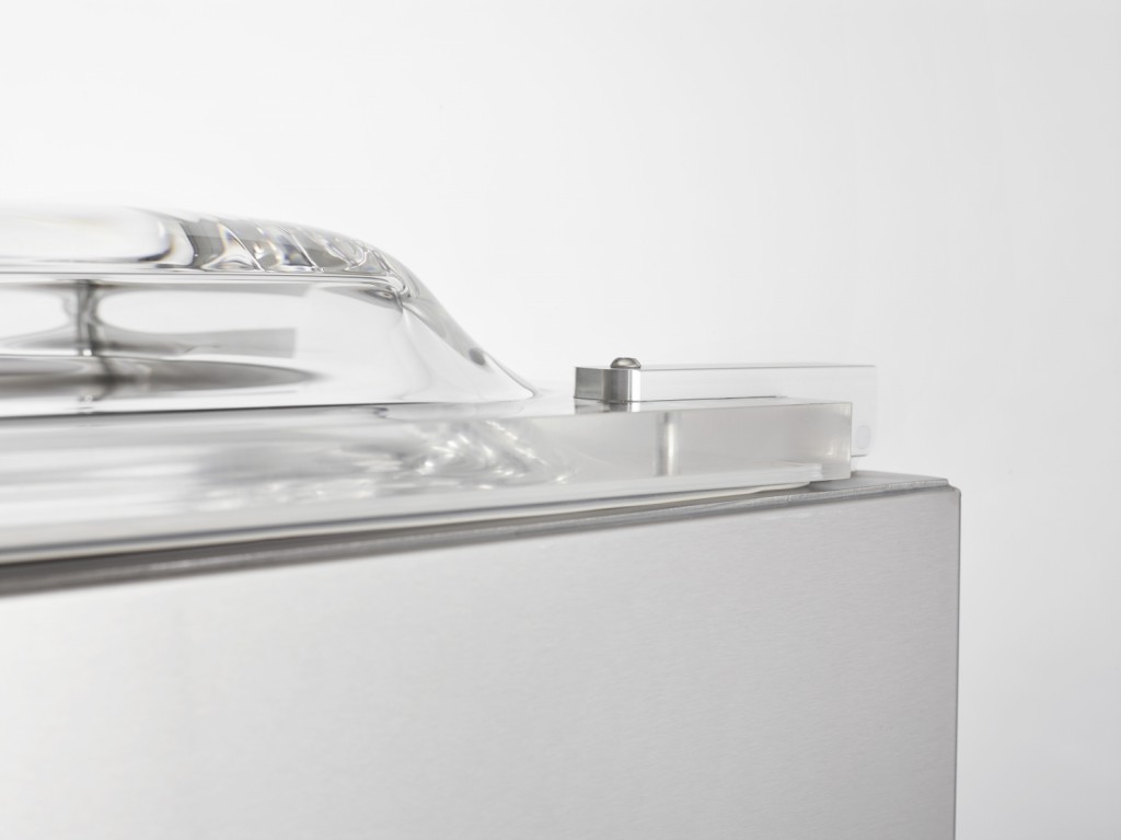 - Rostfreies Edelstahlchassis und transparanter Deckel