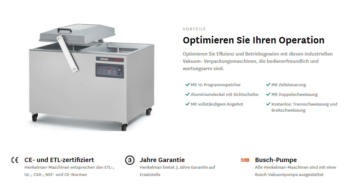 Henkelman Profi Vakuummaschinen Für die Lebensmittel- und Non-Food-Industrie