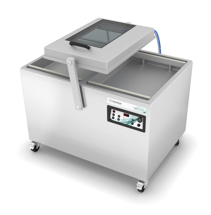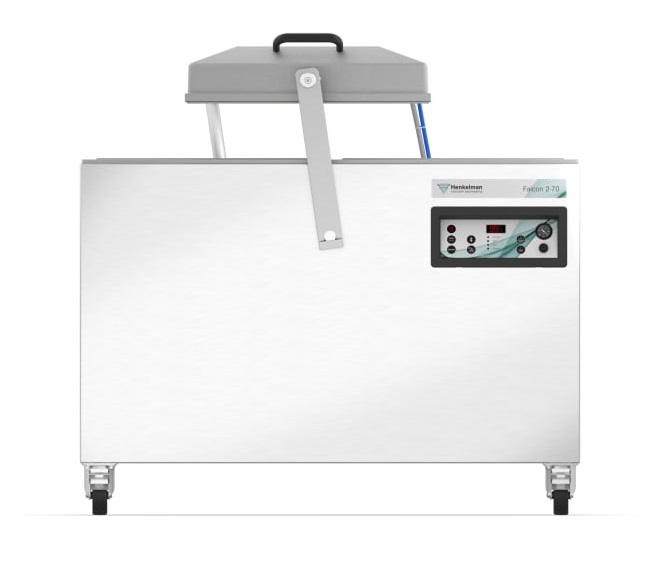 Alle Henkelman Falcon-Modelle sind mit einer Aluminiumvakuumkammer und einem Aluminiumdeckel ausgestattet. Darüber hinaus verfügt der Deckel über ein Sichtscheibe zur Überwachung des Verpackungszyklus.