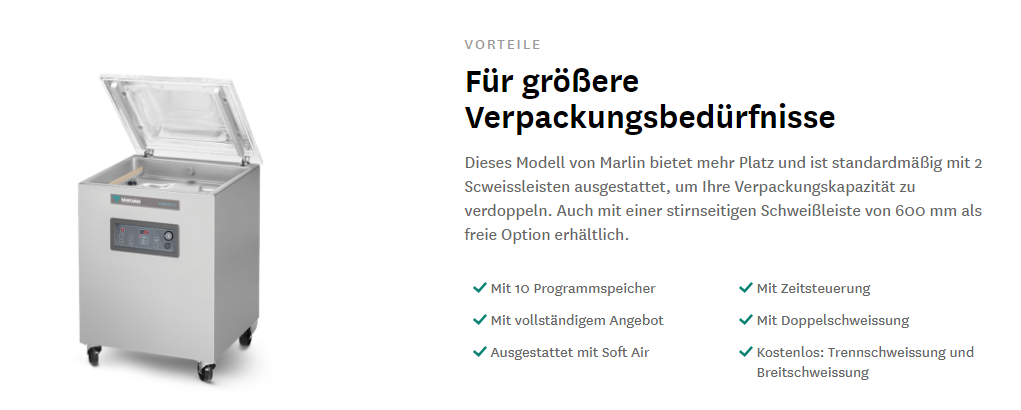 - Standard Soft-Air für optimalen Schutz von Produkt und Vakuumbeutel