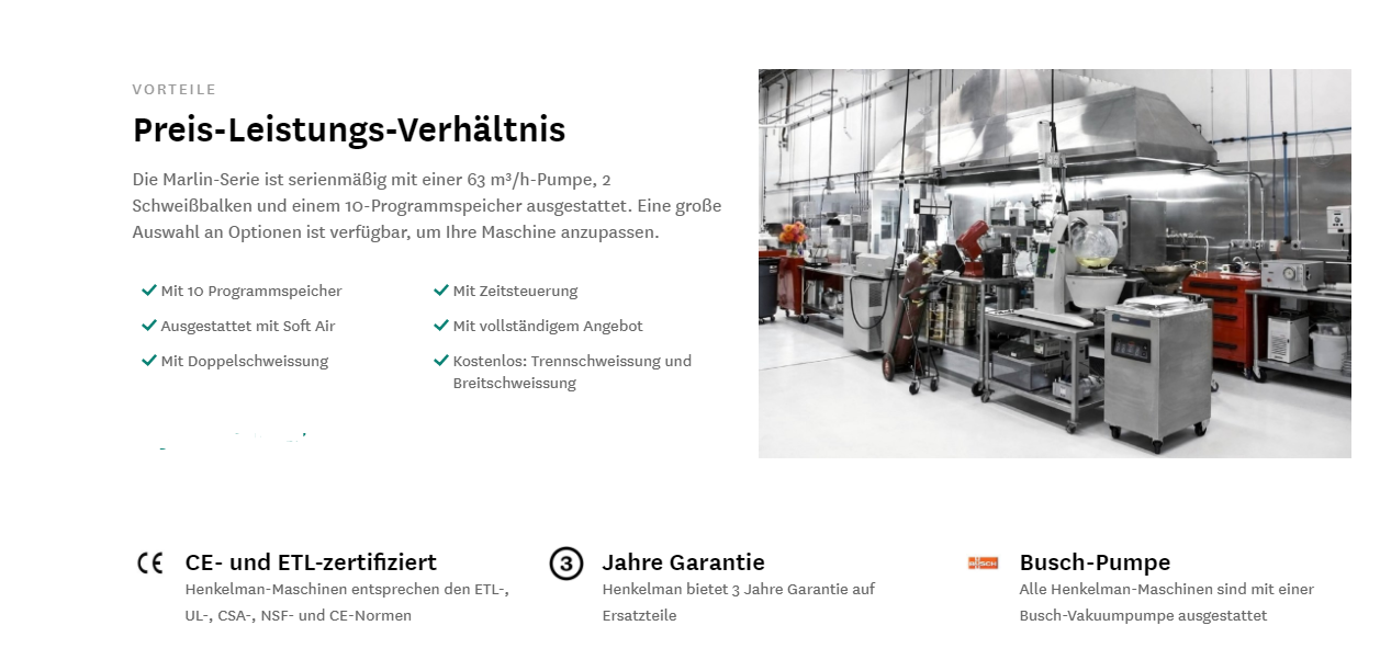 Henkelman Profi Vakuummaschinen Für die Lebensmittel- und Non-Food-Industrie