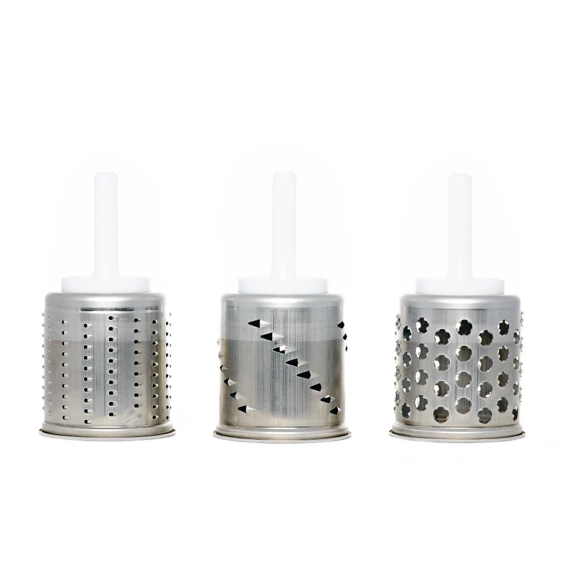 - Mit Pürierkegel, Juliennekegel und feinem Zerkleinerkegel