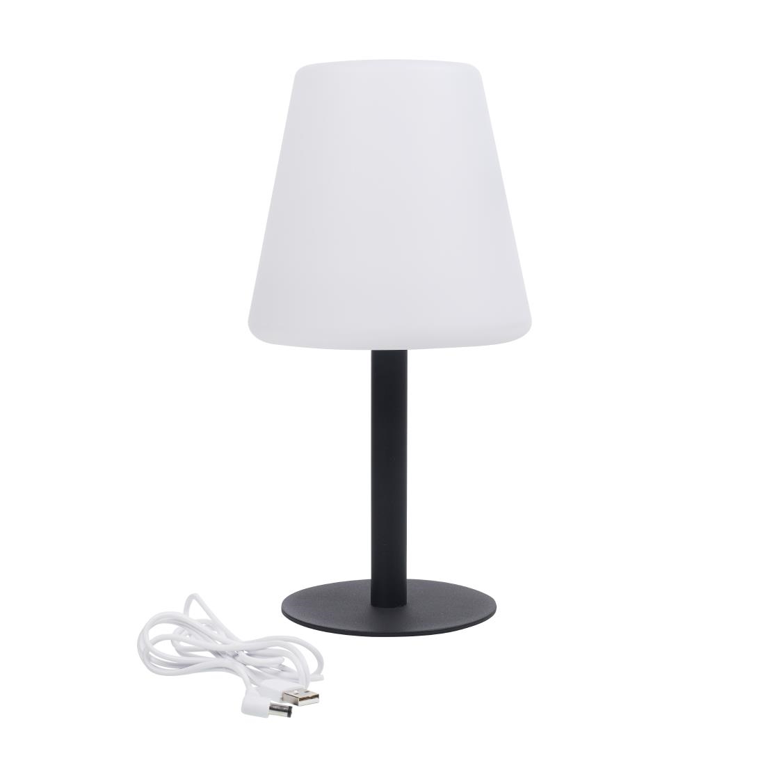 Diese wiederaufladbare Solartischleuchte mit warmweißem Licht schafft eine großartige Atmosphäre während langer Sommernächte.