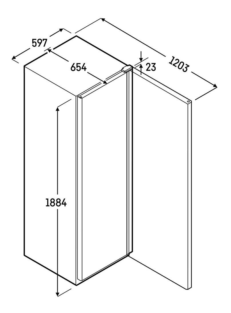 | Außenmaße: Höhe / Breite / Tiefe | 188,4 / 59,7 / 65,4 cm |