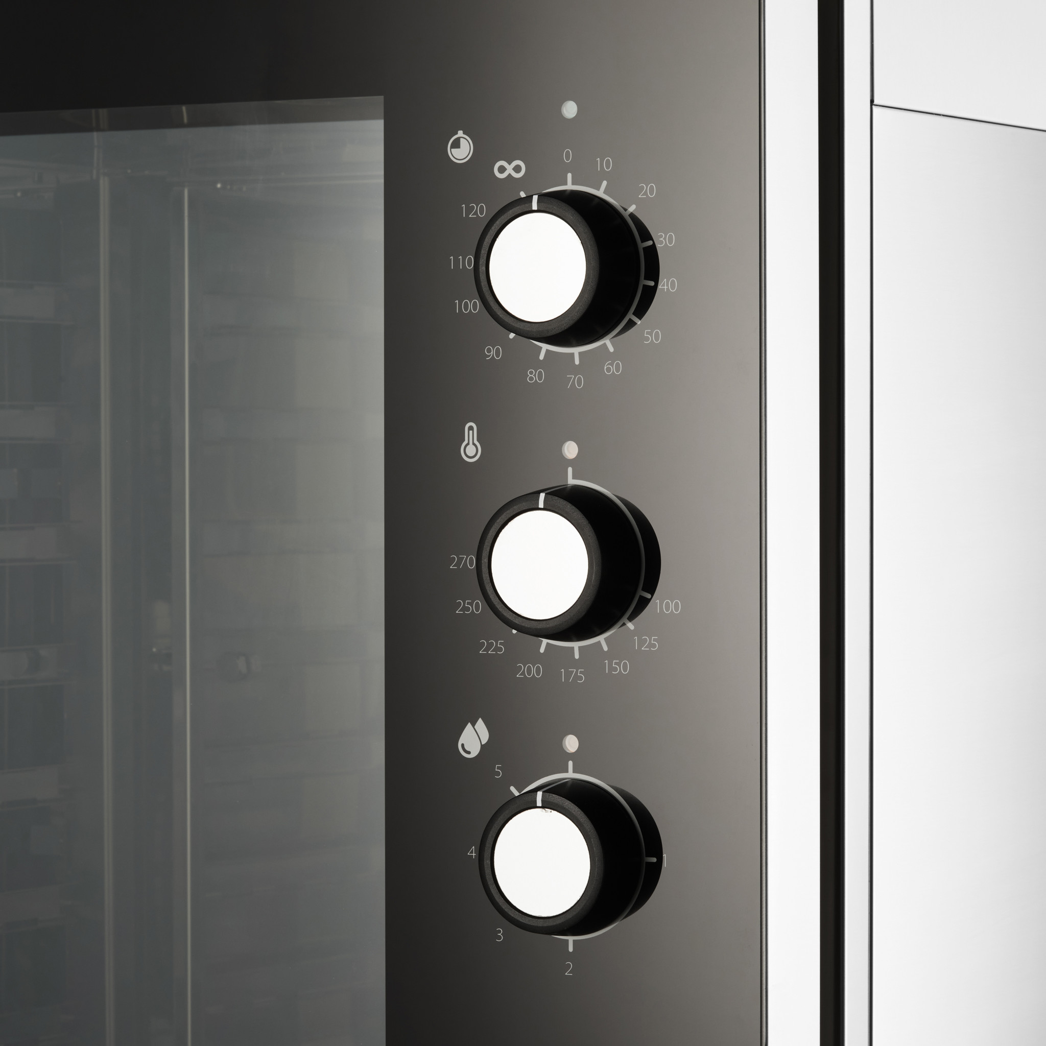 - Analoge Steuerung für Dampf, Temperatur und Timer