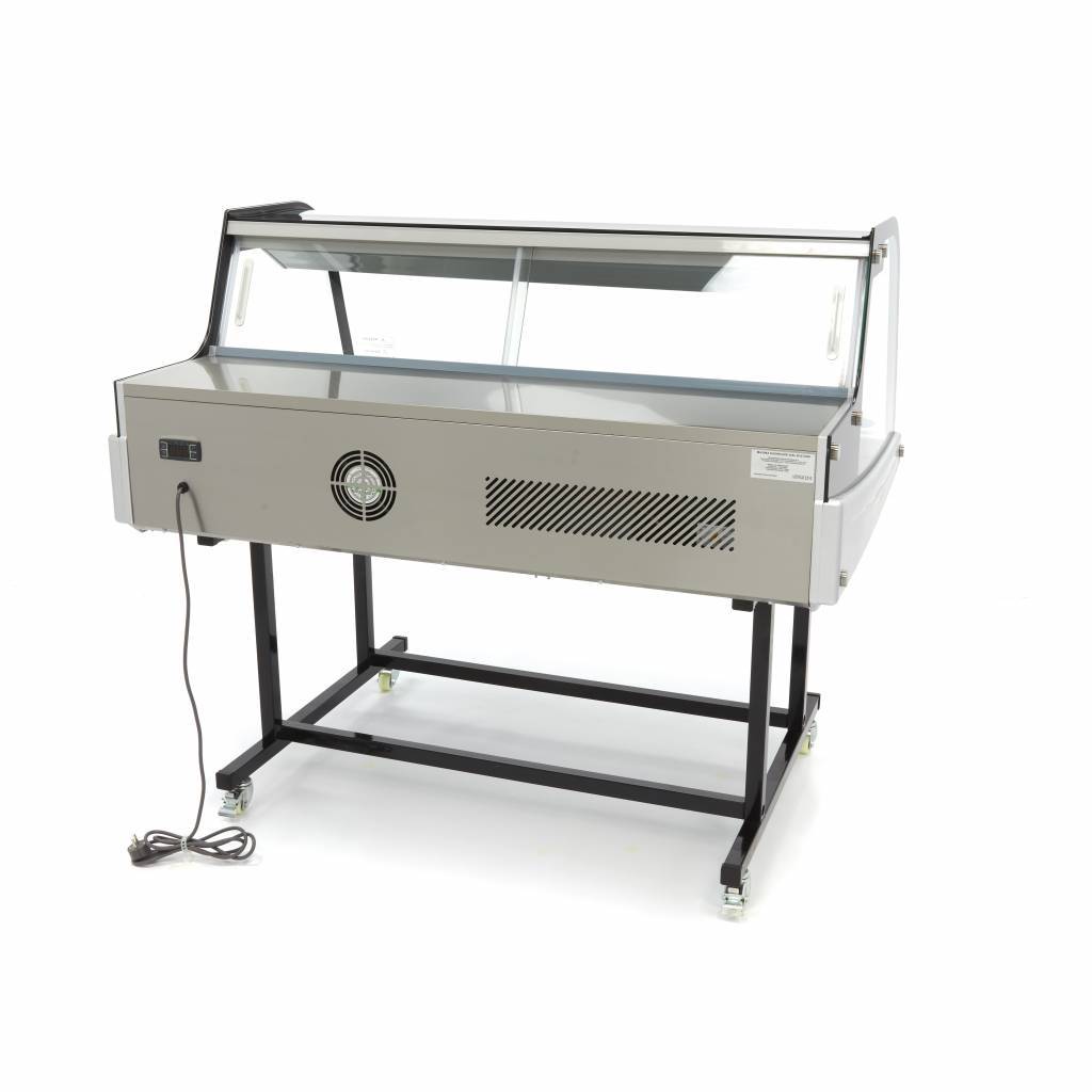 Hochwertige Kühlvitrine mit Ständer inklusive Rädern. Gebogenes Glas an der Vorderseite, Schiebetüren an der Rückseite bieten leichten Zugang. Sehr genaue und einfach zu bedienende digitale Temperaturregelung.