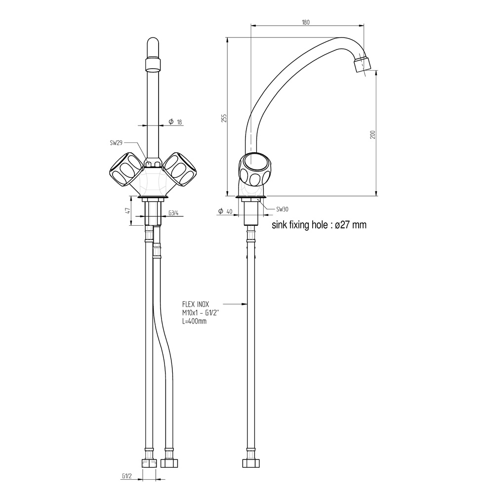 MONOLITH Mischbatterie, Einloch-Montage, zwei Mischventile