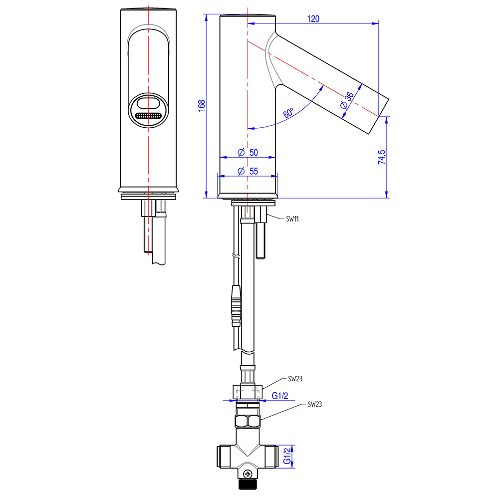 - automatische Abschaltung nach 1 Min. kontinuierlichem Durchlauf