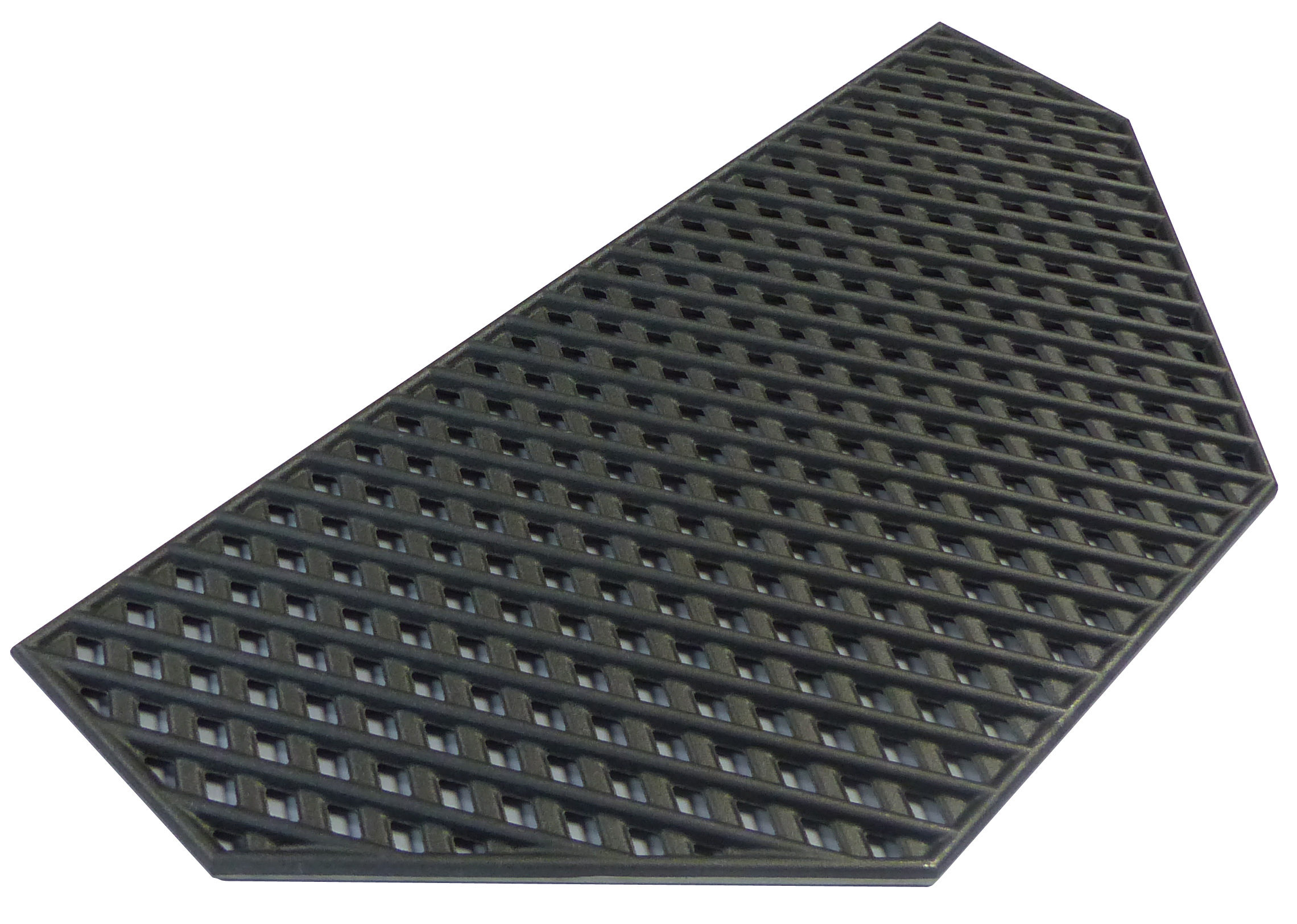 Massiver gusseiserner Rost für ein perfektes Branding. Durch die Stärke von 15 mm speichert dieser schwere Rost die Hitze ideal und kühlt auch beim Auflegen von rohem Fleisch nicht aus. Der wendbare Rost besitzt eine Seite für ein rautenförmiges Branding und eine Seite für ein Streifenbranding.
