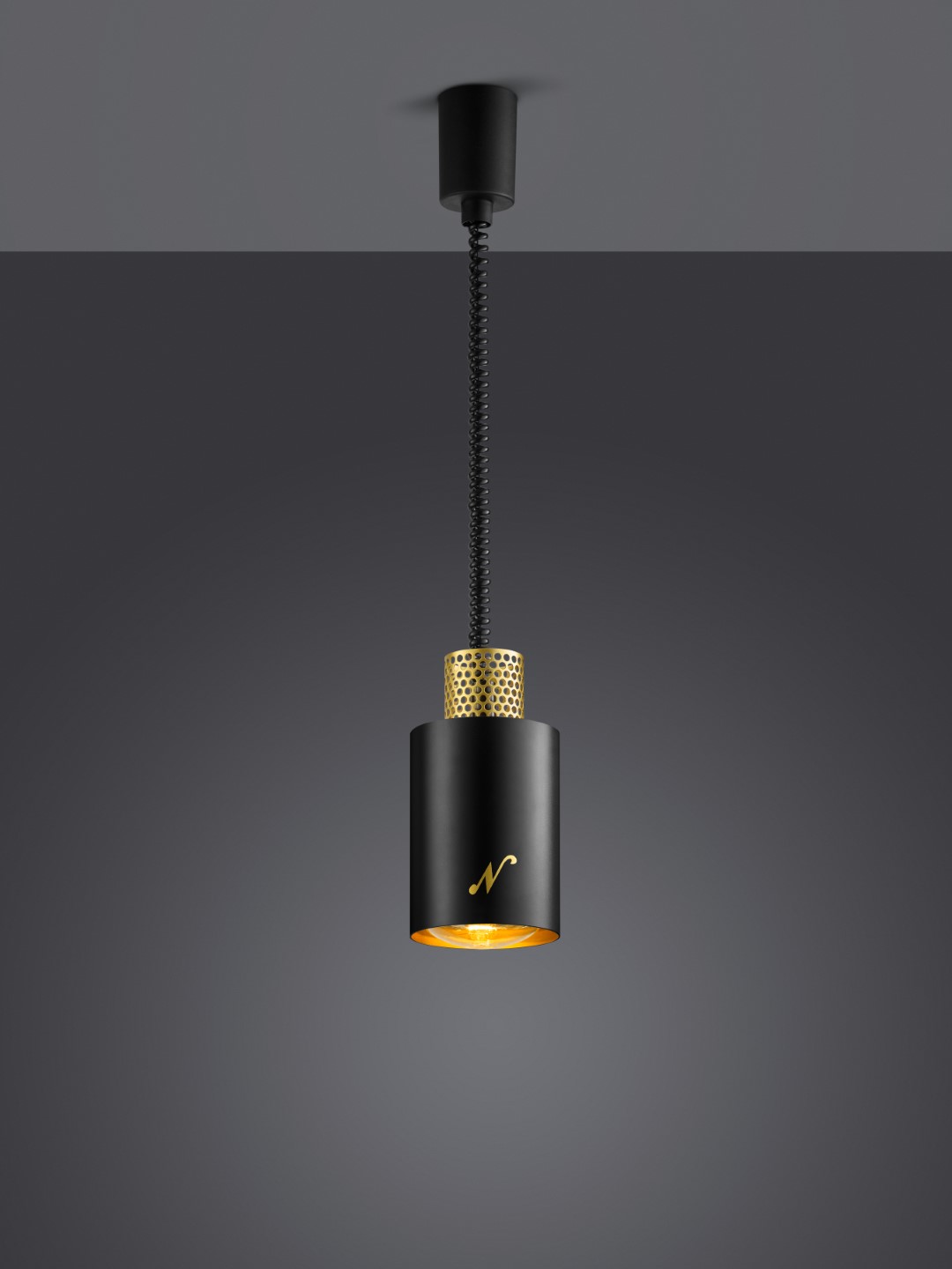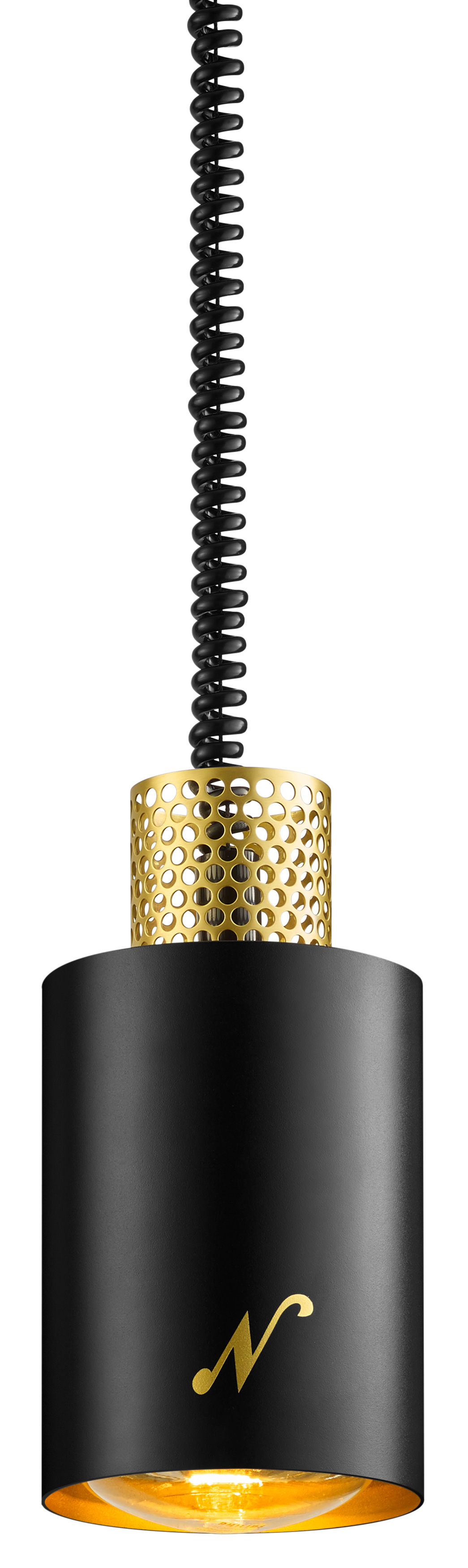 Ein-/Ausschalter • ausziehbar von 900 auf 1700 mm • außen matt-schwarz, innen gold lackiert • inkl. Infrarot-Leuchtmittel (weißes Licht)