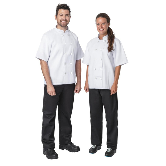 Leichte Kochjacken aus Polycotton. Schwarzer Knopfverschluss. 170g/m2.