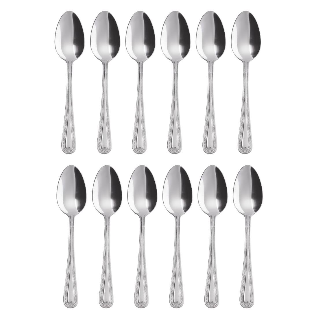 Polierter Edelstahl 18/0 mit einem attraktiven Perlenrand. Verkauft im 12er Pack.