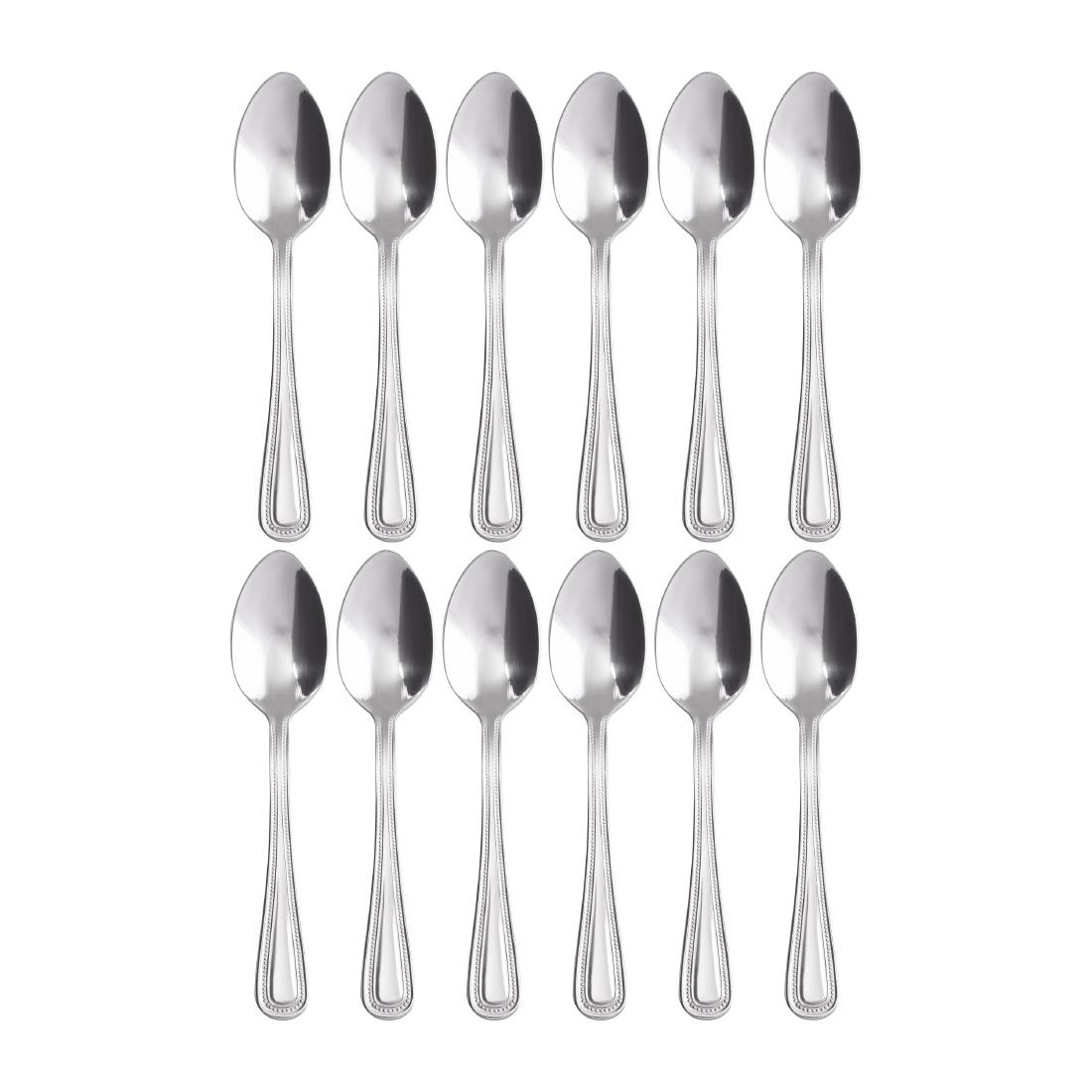 Polierter Edelstahl 18/0 mit einem attraktiven Perlenrand. Verkauft im 12er Pack.