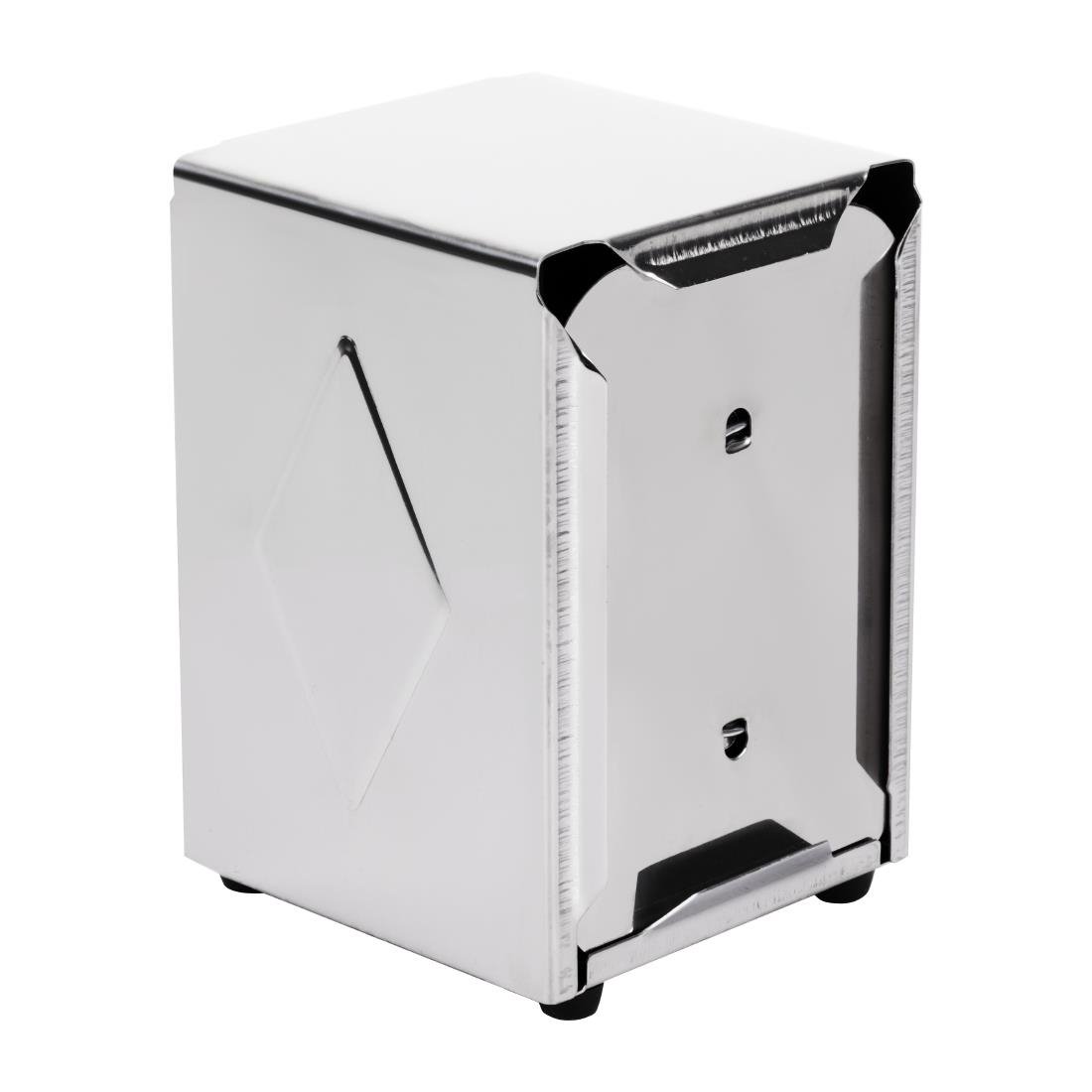Klassischer 50er Jahre Chrom-Look Edelstahlspender. Doppelseitig befüllbar. Größe (cm): 14(H) x 9,5(B) X 12(T) . Recycelbare einlagige Servietten sind separat erhältlich.