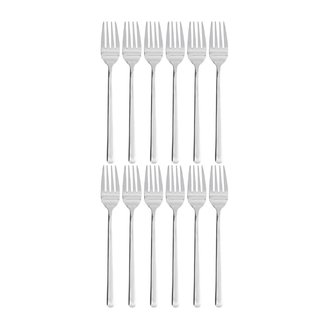 Hochglanzpolierter Edelstahl 18/0. Perfekt austariert mit einem schlanken Griffdekor. Verkauft im 12er Pack.