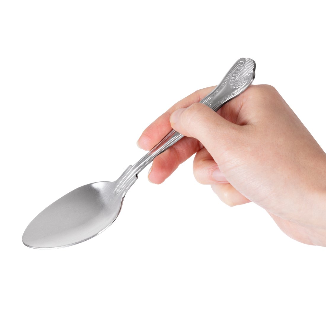 Polierter Edelstahl 18/0 mit einem eleganten prunkvollen Dekor auf dem Griff. Verkauft im 12er Pack.