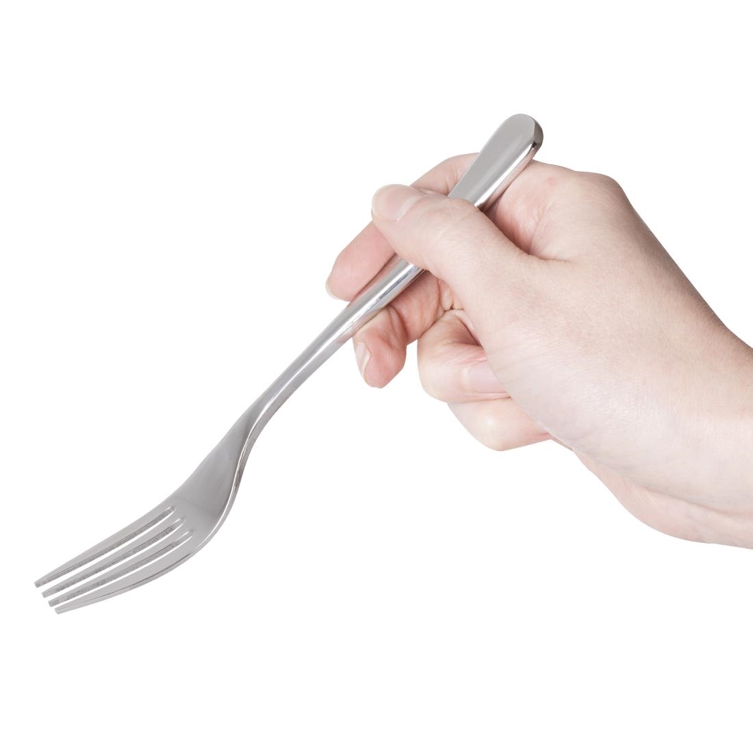 Glatte Linien, die zu einem auslaufenden Griff in Tropfenform fließen, verleihen jeder Tischdekoration einen Hauch von Eleganz. Robuster, geschmiedeter hochglanzpolierter Edelstahl 18/10. Verkauft im 12er Pack.