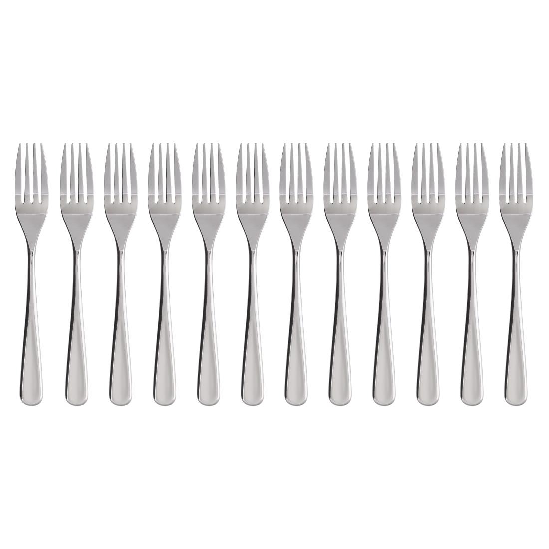 Glatte Linien, die zu einem auslaufenden Griff in Tropfenform fließen, verleihen jeder Tischdekoration einen Hauch von Eleganz. Robuster, geschmiedeter hochglanzpolierter Edelstahl 18/10. Verkauft im 12er Pack.