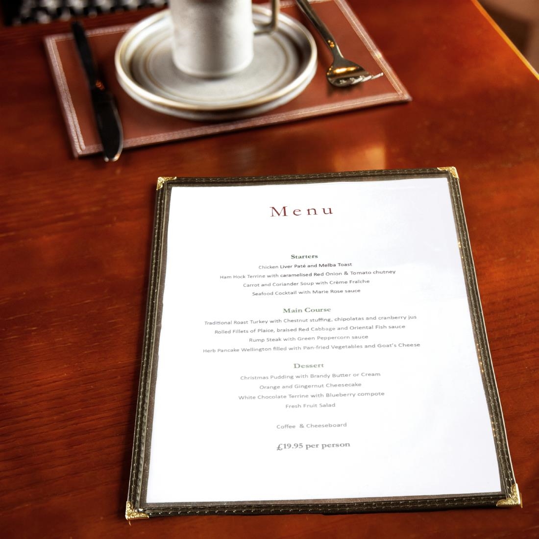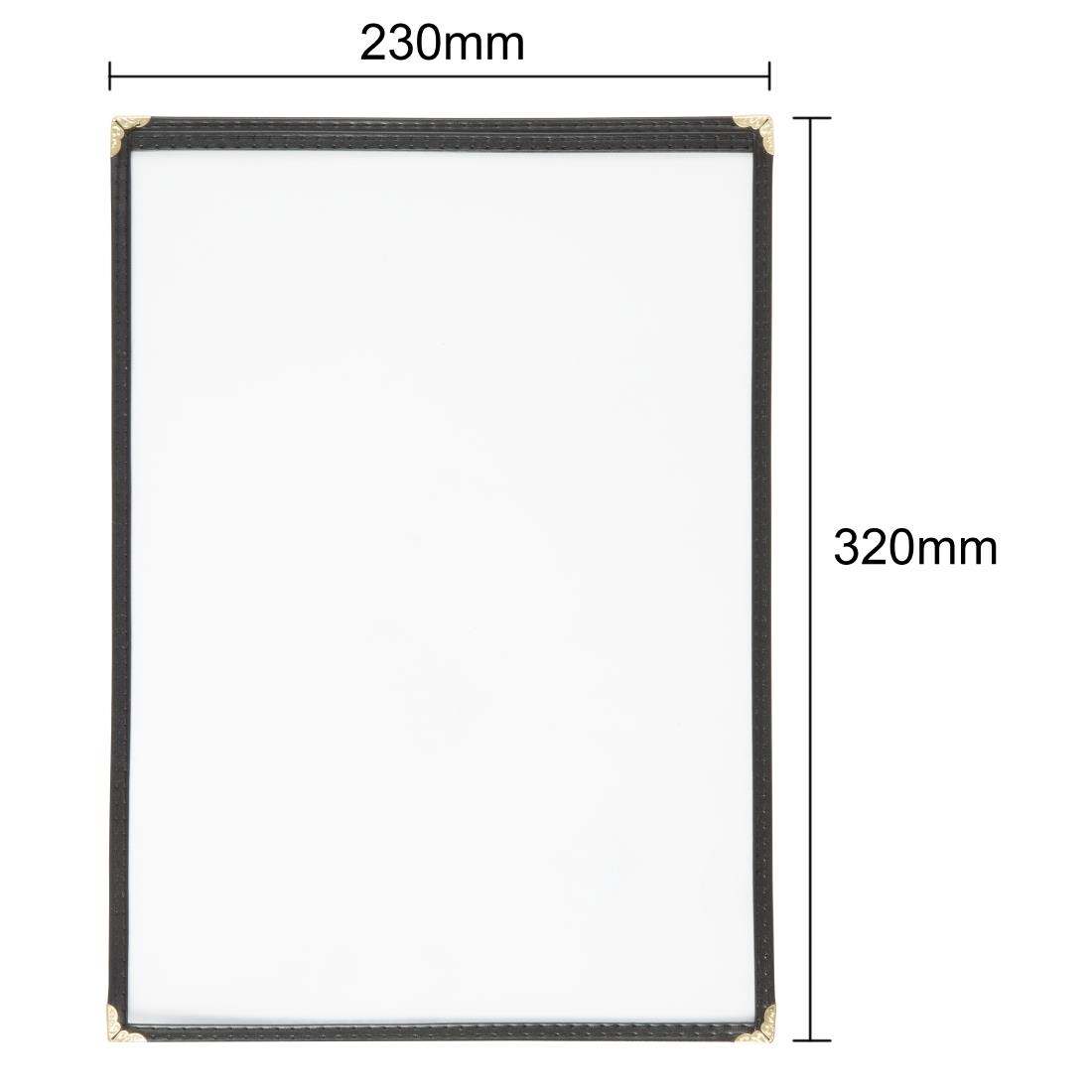 Legen Sie einfach Ihre Speisekarte hinter die Kunststofffolie für eine praktische und professionelle Präsentation. Ausgestattet mit Metallecken. Erhältlich in A4 oder A5. Einlegeblätter nicht inbegriffen.